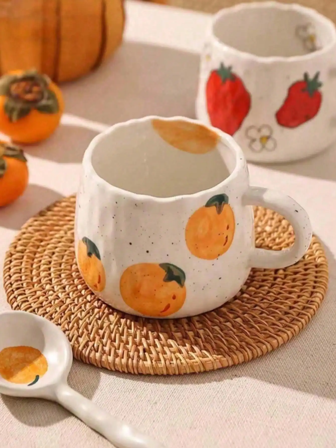 2 reviews for 1 hand-painted ceramic coffee cup with fruit pattern, perfect for home, office, event gifts, holiday gifts, birthday gifts