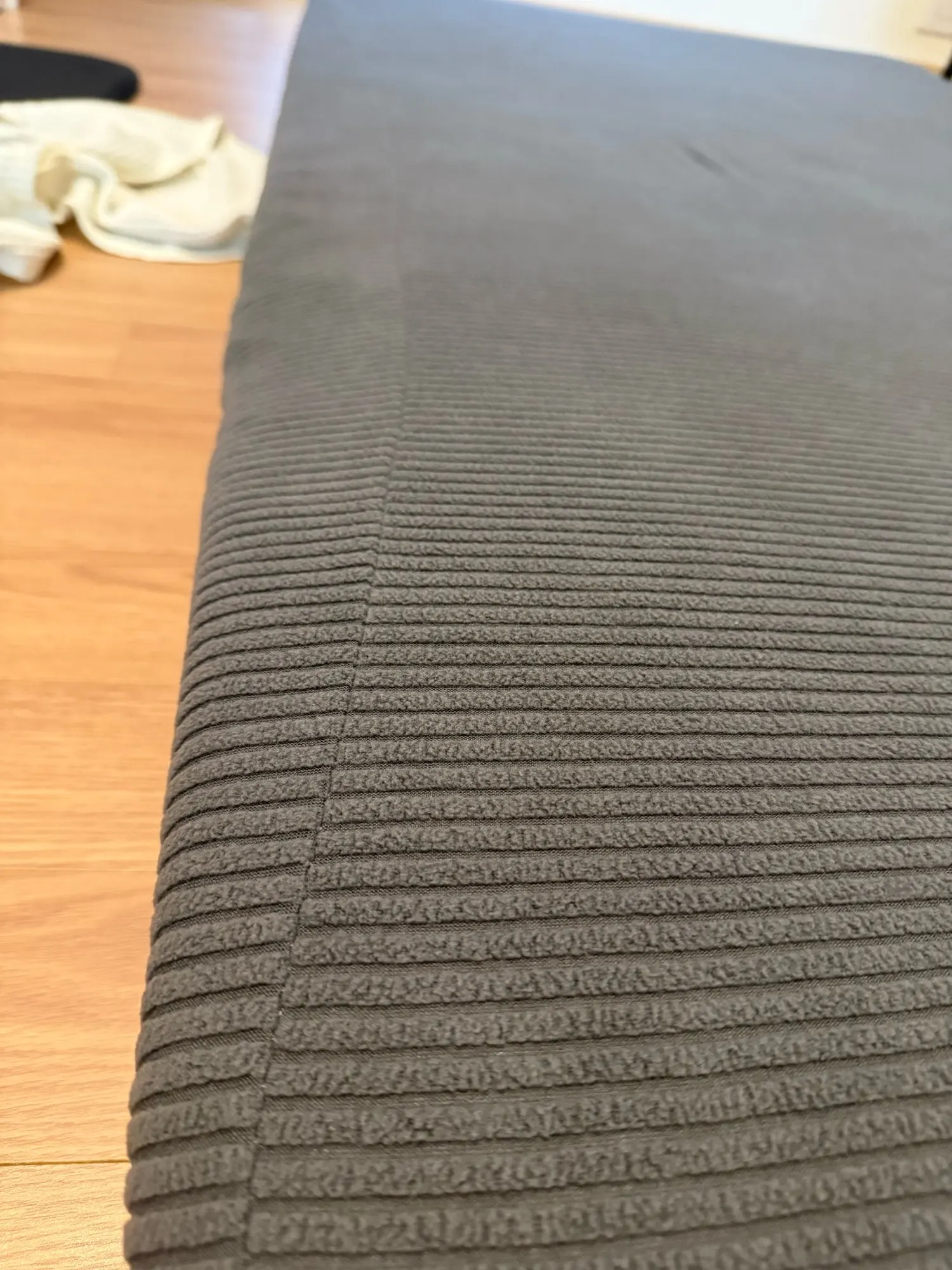 The mat is large, which is good. Usually, regular ones barely fit, so I deliberately looked for a larger one, and this one fits well because it's large. It was too big and there was nothing to secure it, so I ordered a separate bed mat to secure it.
