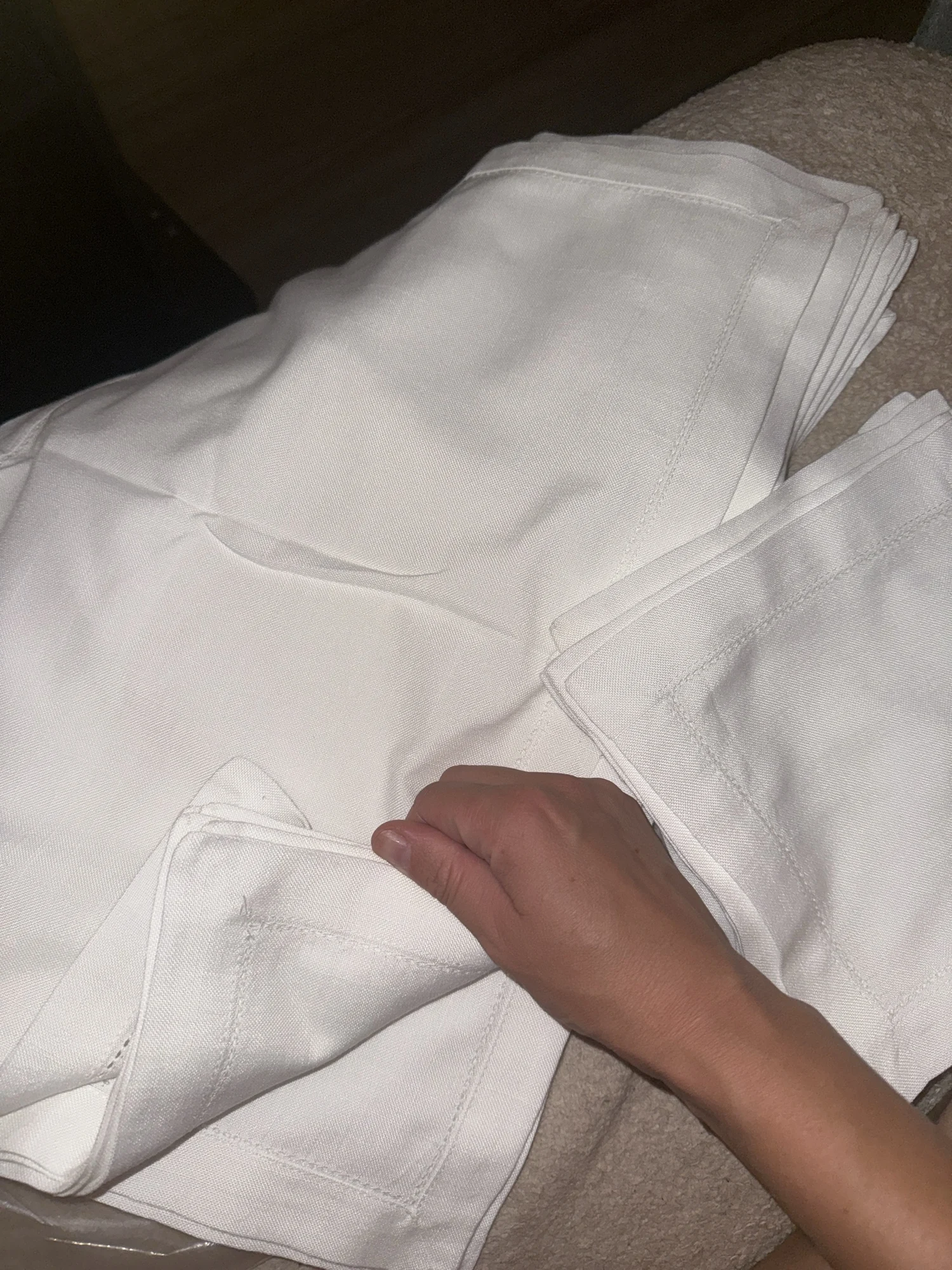 Set of 12 handmade cotton-polyester blend place mats and napkins with elegant hemstitched edges. Soft, durable, and beautifully embroidered for a refined dining experience. Ideal for everyday use or special occasions, adding a natural, minimalist touch to your table setting.