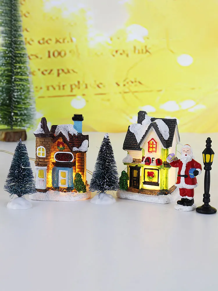 Illuminate your holiday spirit with this LED Lighted Mini Christmas Village Figurines Decoration Set. Crafted from durable resin, this charming collection features beautifully detailed houses and trees, creating a festive winter scene. Perfect for tabletops or mantels, it brings warmth and joy to your Christmas decor.