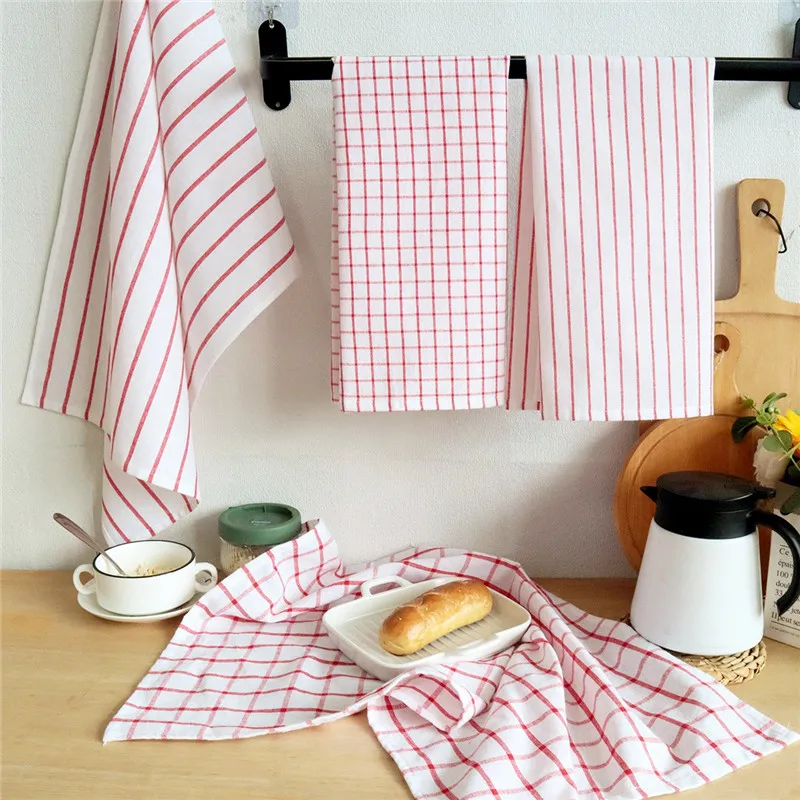Charming Red & White Plaid Cotton Tea Towel for Festive Flair