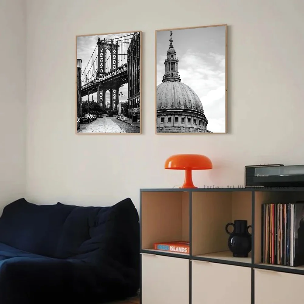Transform your space with this stunning black and white poster featuring iconic landmarks like London’s Tower Bridge and New York. Crafted on high-quality paper, it adds a modern touch to any living room, bar, or restaurant. Available in various sizes, this rolled print is the perfect statement piece for stylish decor.