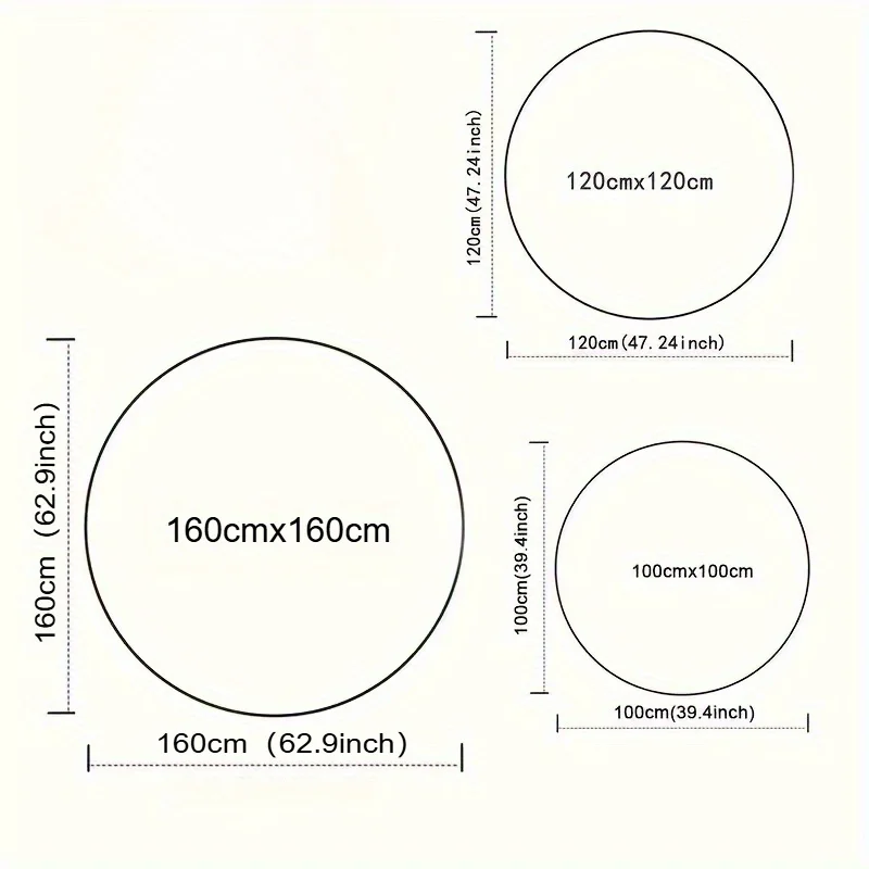 - Available in multiple sizes: 40 cm, 60 cm, 80 cm, 90 cm, 100 cm, 120 cm, 150 cm, 160 cm, 180 cm in diameter