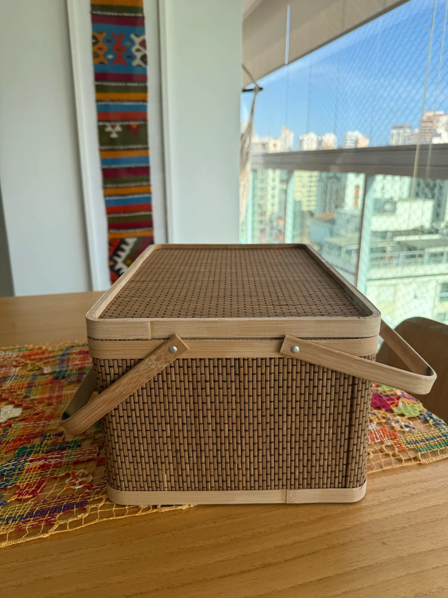 Made entirely from eco-friendly bamboo, this basket avoids synthetic materials and chemicals. To maintain its appearance, simply wipe clean with a damp cloth and air dry. Its robust construction ensures it withstands regular use without losing shape or strength. This basket offers a sustainable, stylish storage option that blends function with timeless design.