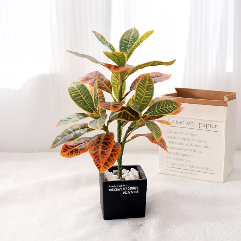 • Plant Style: Designed with realistic branches and vibrant Codiaeum leaves that mimic the beauty of natural plants.