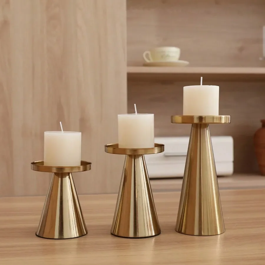 - Three-piece set: Includes one large, one medium, and one small candlestick to create a visually appealing arrangement.