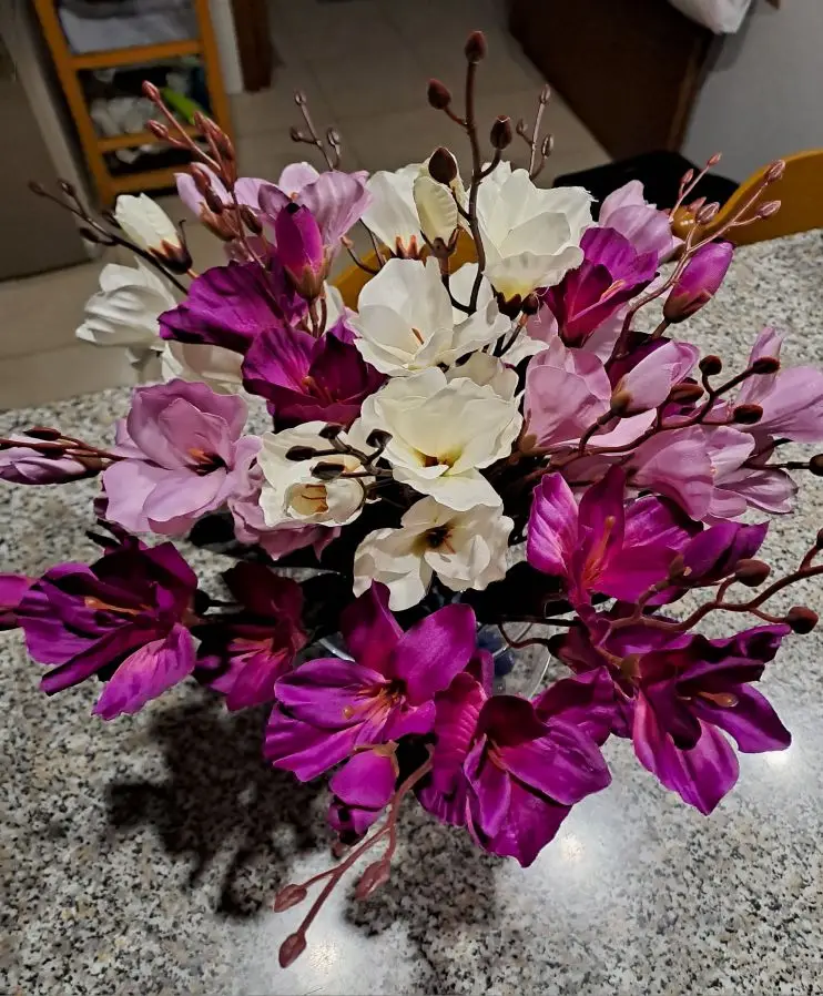 The silk material used in our artificial flowers ensures durability and longevity, allowing you to enjoy them for years to come. There are no high-concern chemicals, making them safe for your home environment. To maintain their appearance, simply dust them occasionally with a soft cloth. These flowers originate from Zhejiang, China, known for its craftsmanship in artificial floral design.