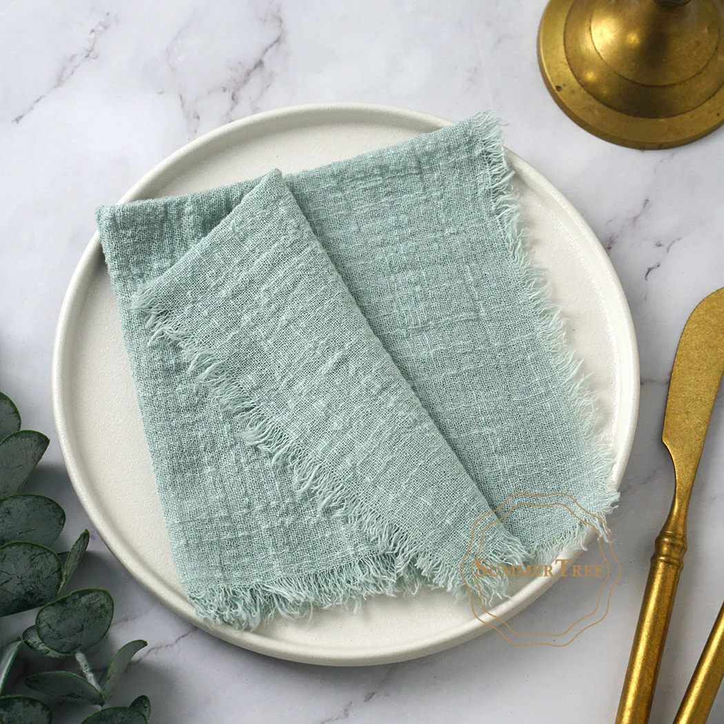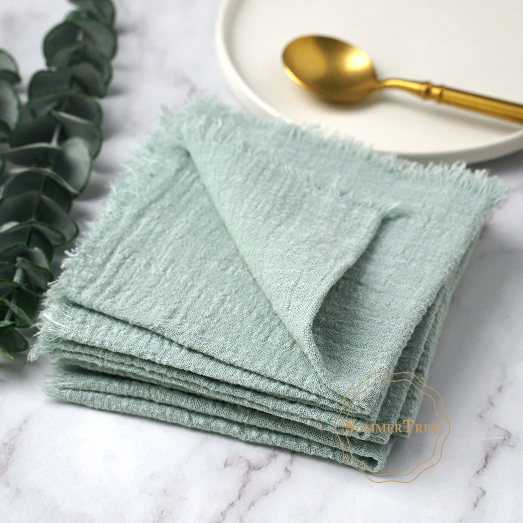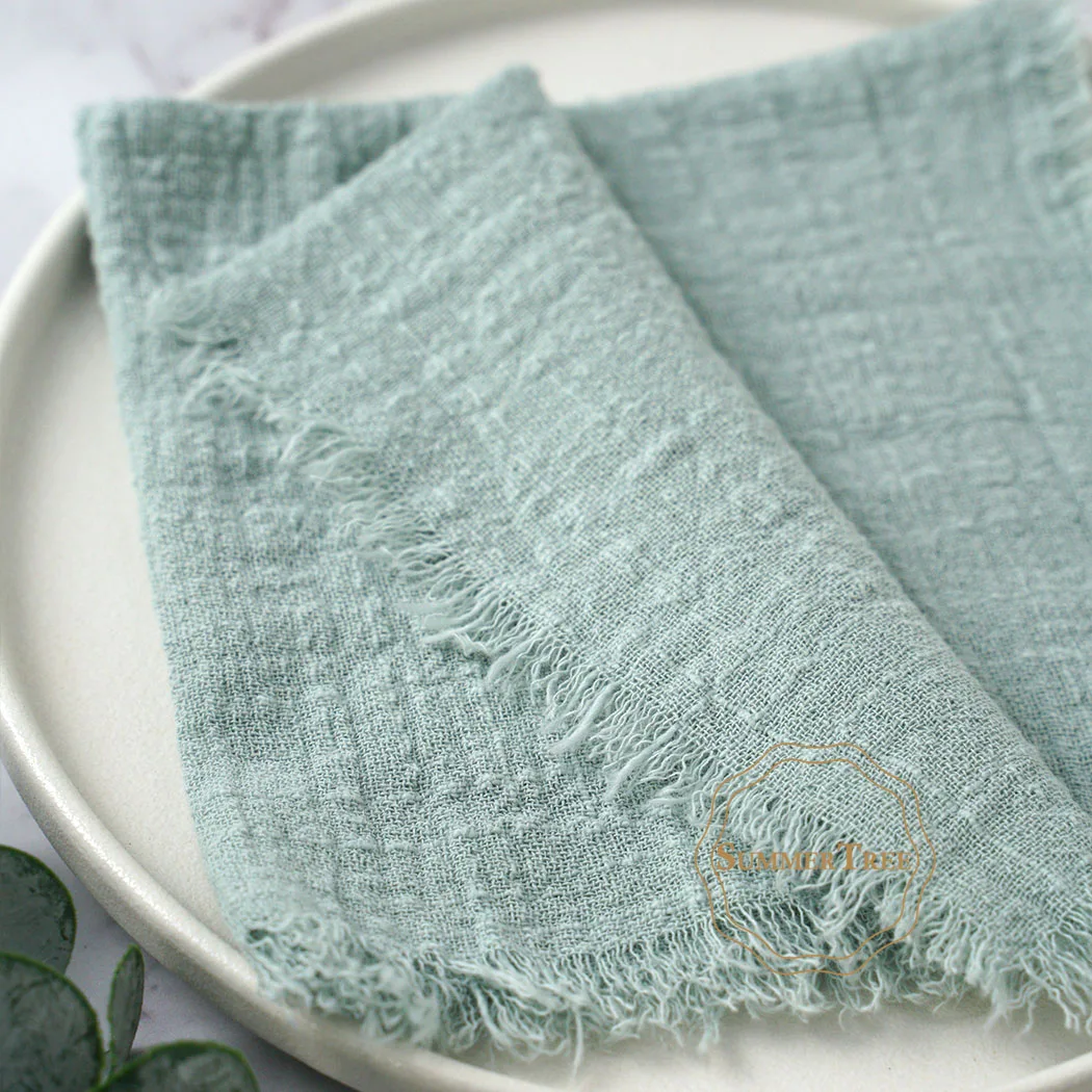 Set of 50 reusable cotton gauze napkins in 18 vintage-inspired colors. Soft, breathable, and handmade with a rustic burr design. Perfect for weddings, parties, and daily dining. Durable, eco-friendly, and easy to customize for any table setting.