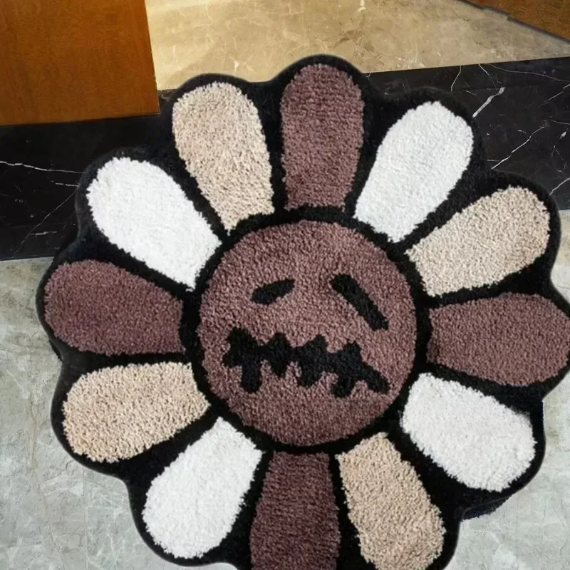 Aesthetic Sunflower Rug Fluffy Thickening Carpet Kawaii Smiling Flower Mat Jack Tufted Carpet Antislip Bathroom Rug Room Decor