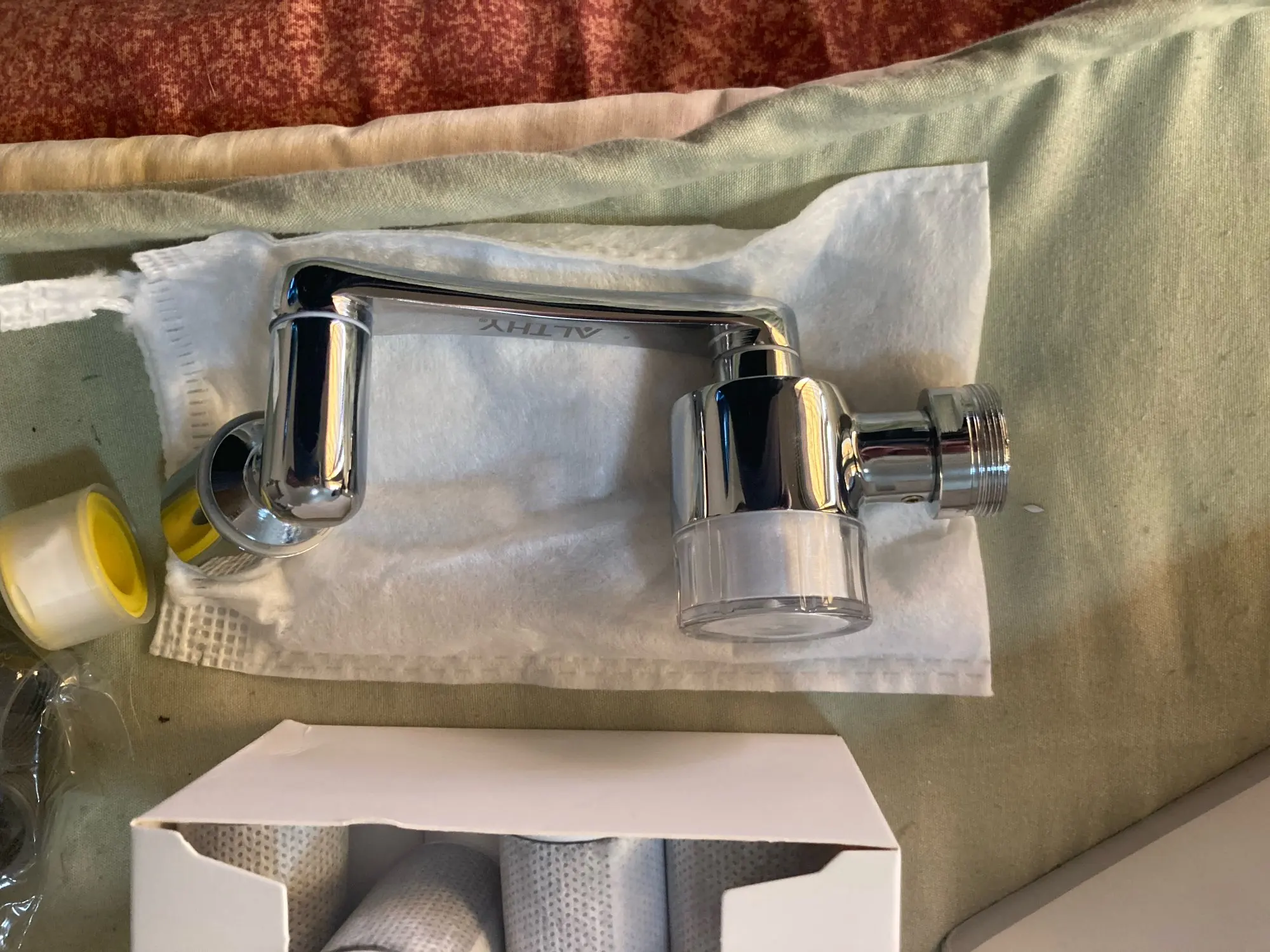 【Lead-Free Solid Brass, BPA-Free Material】 The ALTHY FF1080 faucet extender is made of premium lead-free brass and ABS aerator body. It can withstand water pressure changes and prevent rust in daily use. The product has been tested by a third-party laboratory and recognized for its durability. Additionally, the aerator contains three layers of filter mesh to prevent faucet blockage.