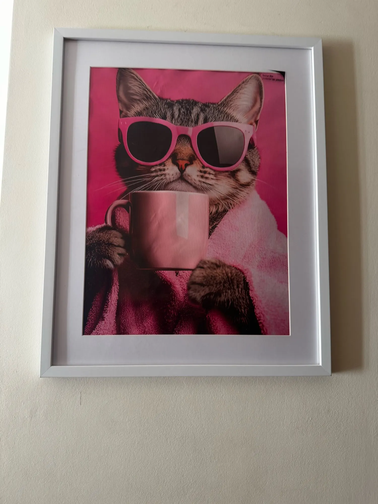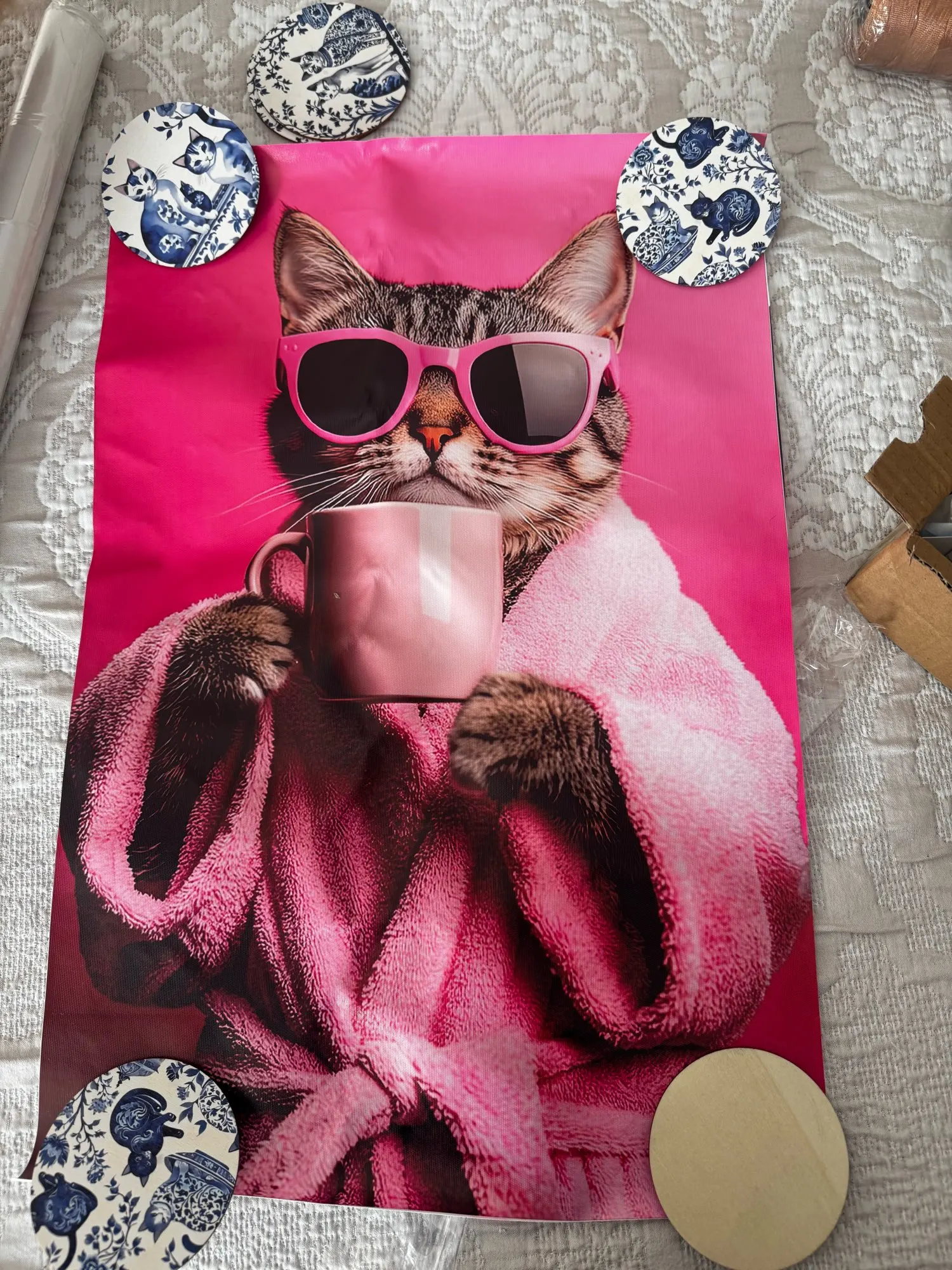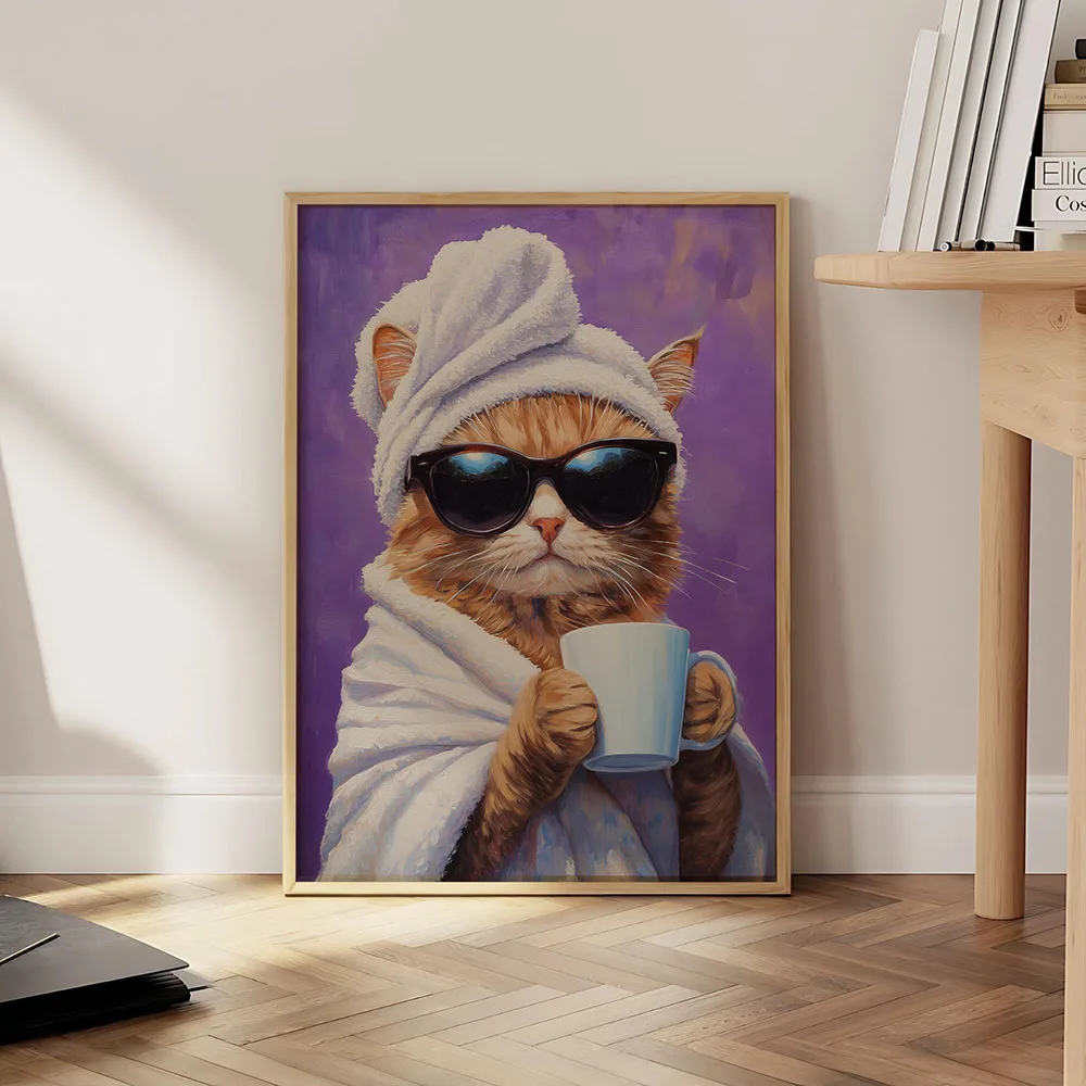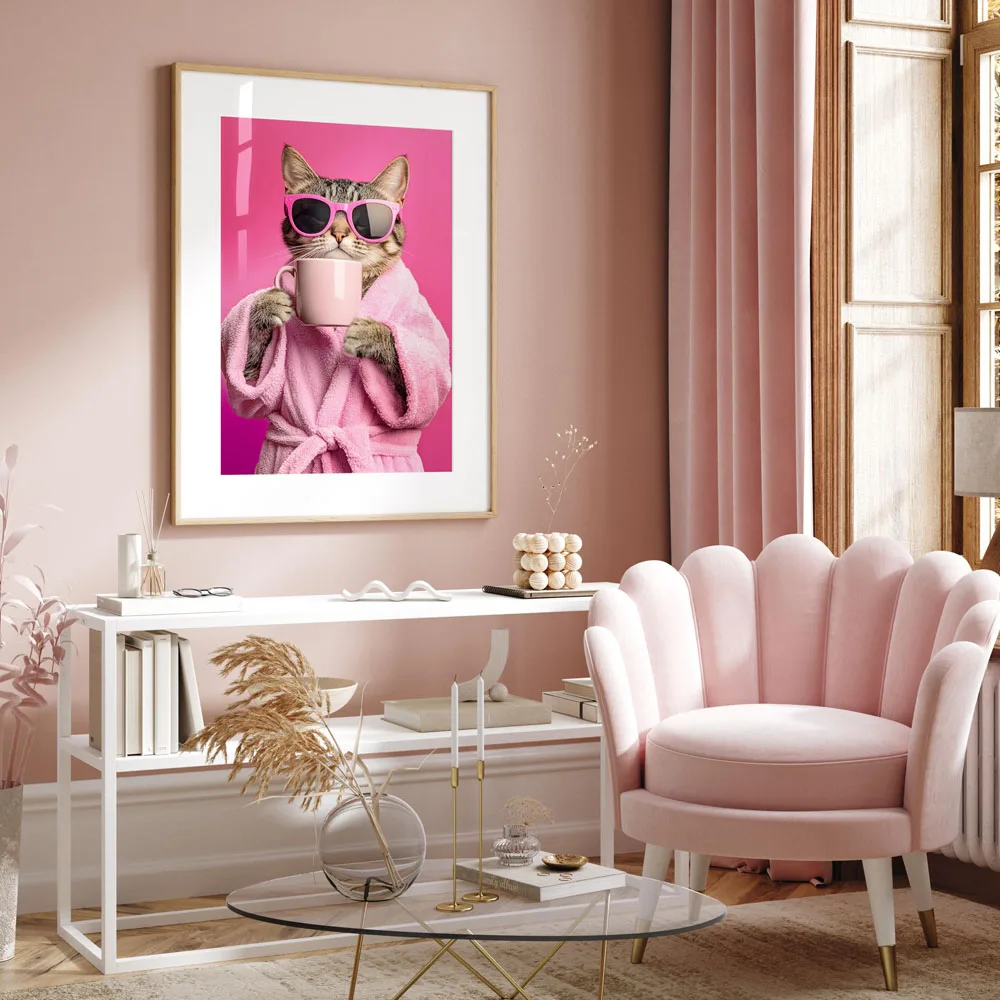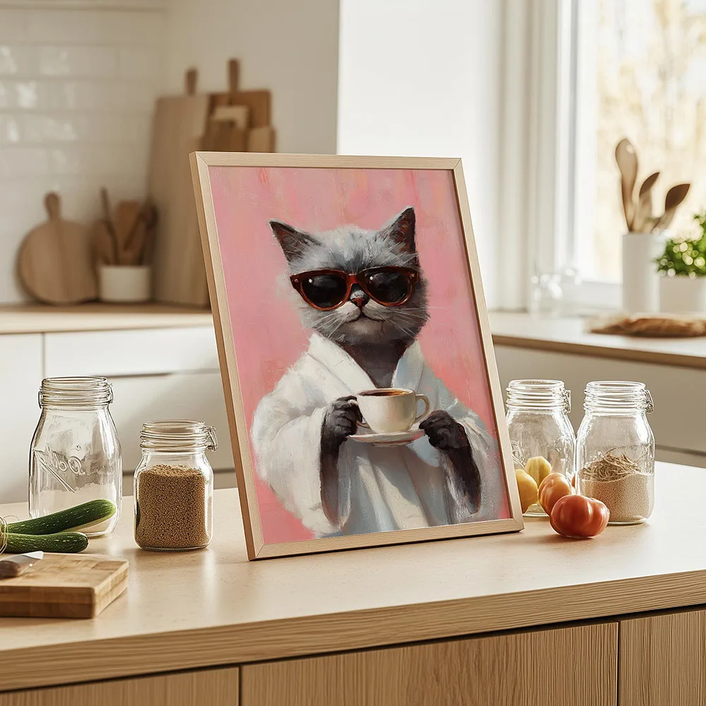 4 reviews for Animal Pink Cat Drinking Coffee Posters Canvas Painting Print Cat Art Room Home Kitchen Bar Cafe Room Wall Decor