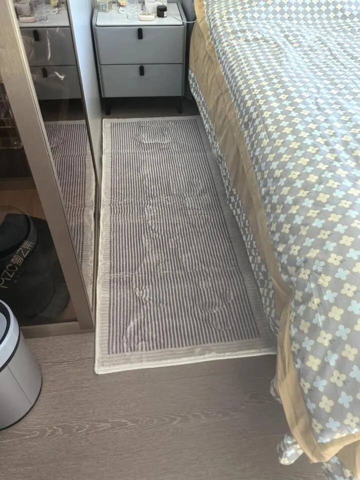 Soft Fluffy Bedside Mat – Minimalist Striped Serene Comfort