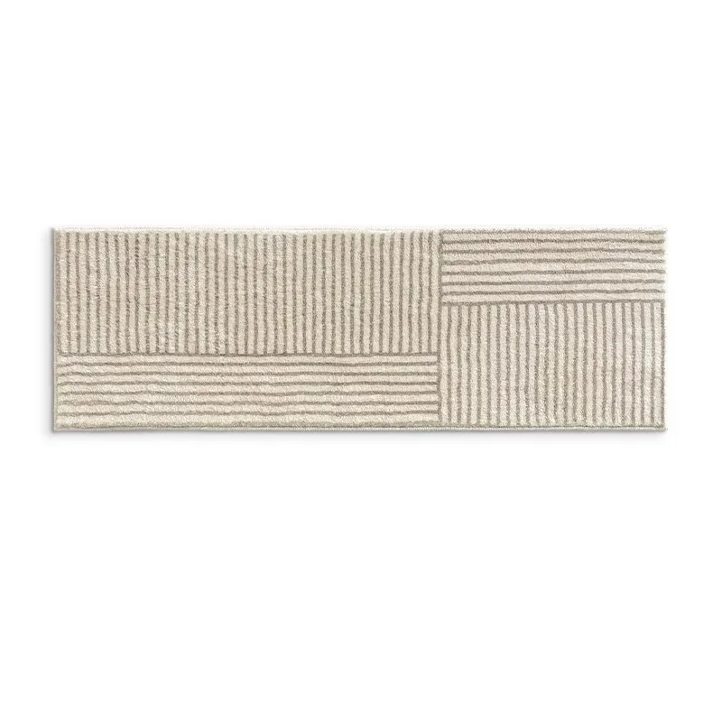 Experience serene comfort. Our soft, fluffy bedside mat features a minimalist striped design. Crafted from 100% polyester for plush texture. Perfect for bedrooms or living areas. Machine-made for durability, hand wash for simple care. Bring quiet style home.