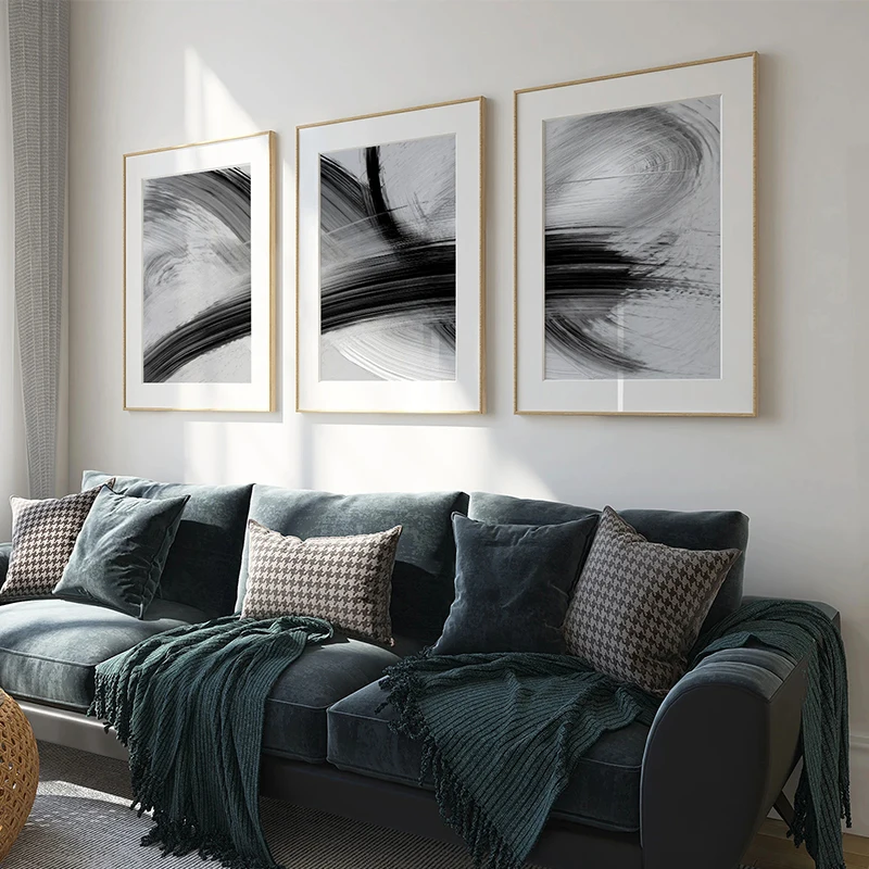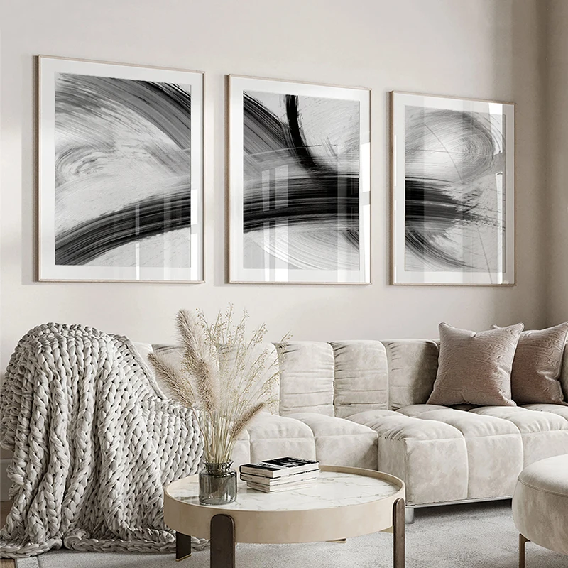 Bold black and white brush strokes create a striking abstract design on high-quality canvas. This unframed modern print adds a sophisticated, neutral touch to any living room or grey-themed space. Available in multiple sizes to perfectly suit your wall.