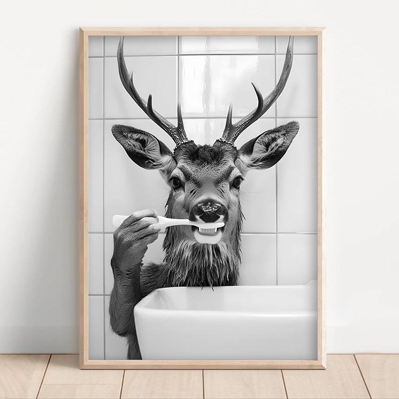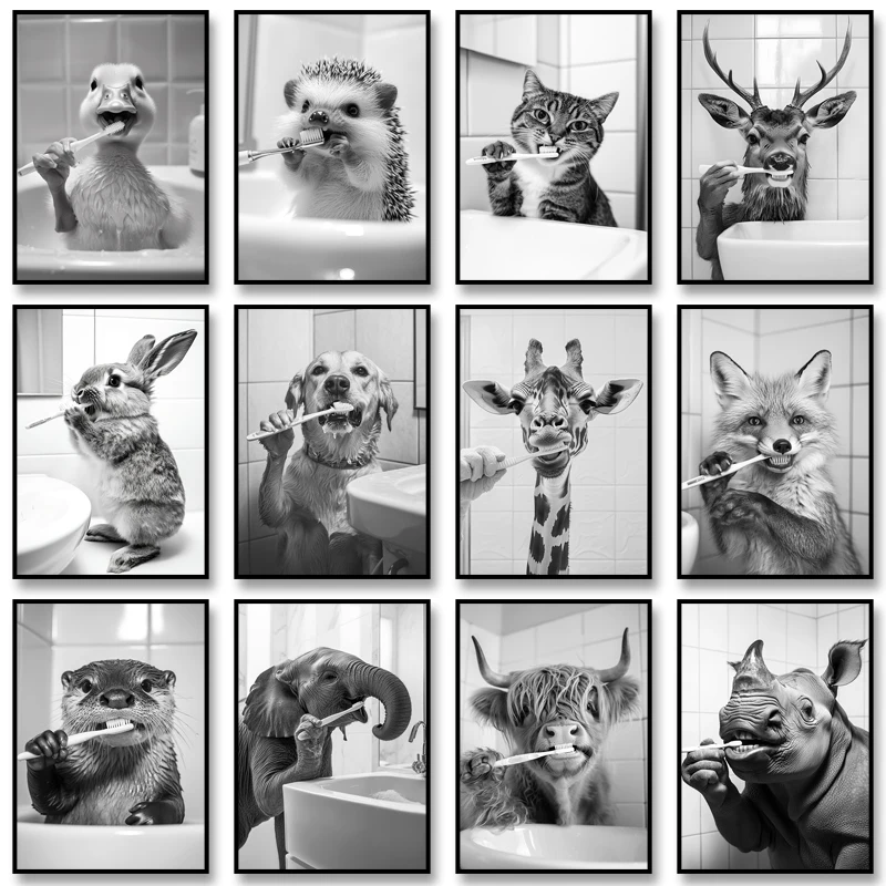 Add a touch of whimsy to your bathroom with our Animal Canvas Print. Available in multiple sizes, this unframed artwork features vibrant watercolor designs on waterproof canvas. Perfect for any space—home, office, or café—its modern style and playful subjects create a fun atmosphere. Transform your walls today!