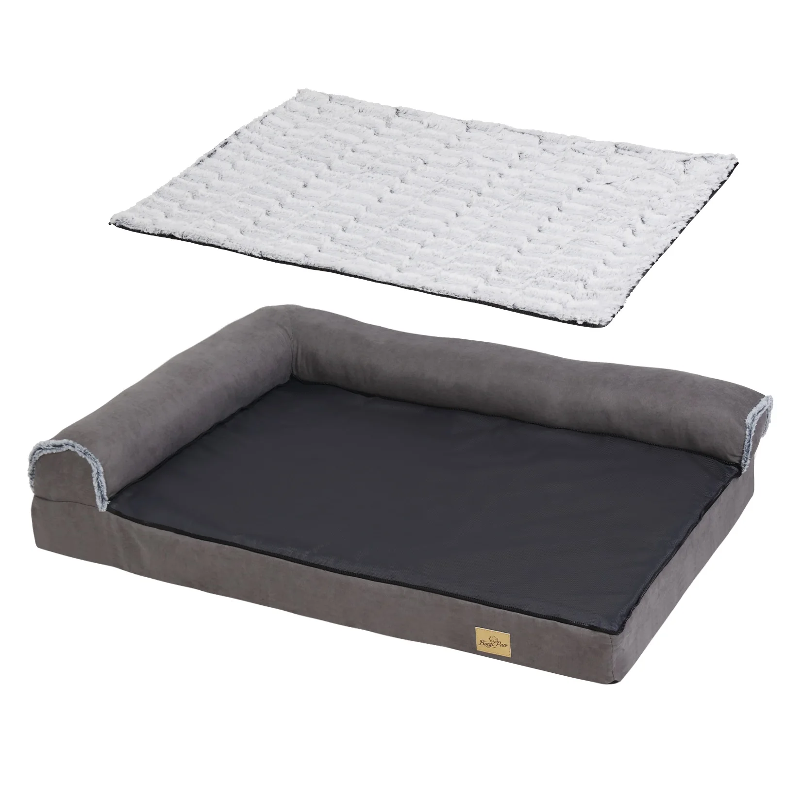 Give your extra-large dog the comfort they deserve with the BINGOPAW Bolster Dog Bed. Crafted from 100% cotton, this orthopedic L-shape bed features memory foam for ultimate support. Its waterproof, removable cover is machine washable for easy cleaning. Treat your furry friend to a cozy, plush sofa they'll love.