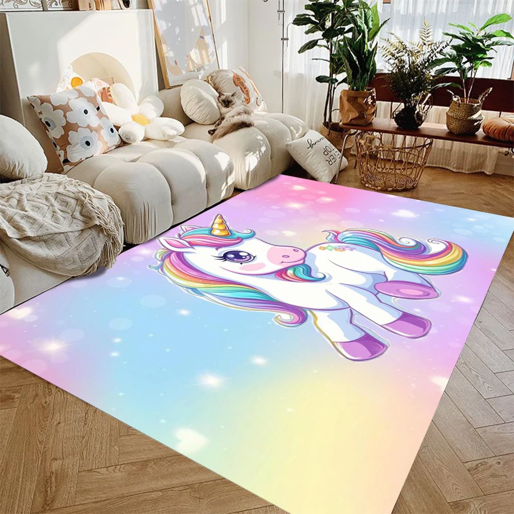 Cartoon Unicorn Carpet for Living Room Decor Sofa Rug Children’s Play Mat Girls Bedroom Bedside Rug Nursery Floor Mat Christmas