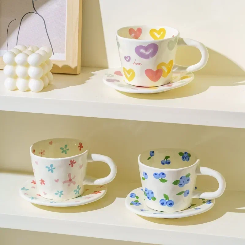 Enjoy your favorite beverages in style with our charming Ceramic Mugs and Saucers. Crafted from eco-friendly porcelain, these hand-pinched mugs feature a delightful blueberry design, perfect for coffee, tea, or milk. With a 300 ml capacity and included tray, they make a thoughtful gift for friends. Ideal for breakfast or cozy moments.
