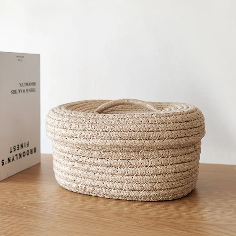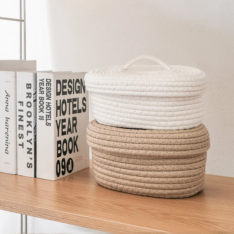 Multi-purpose: can be placed not only on the desktop, but also on bookshelves, wardrobes and other places,storage baskets with lid,cotton rope baskets
