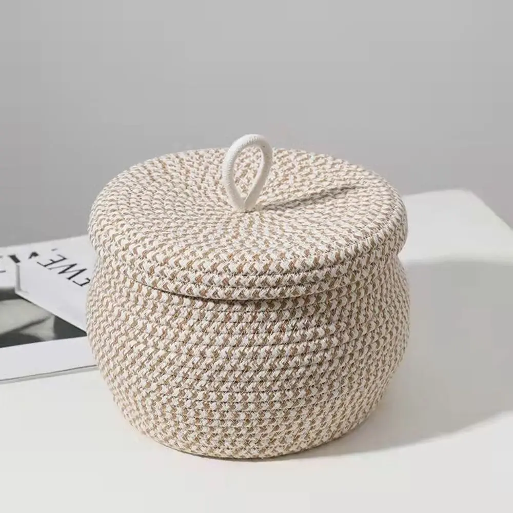Cotton Rope Storage Basket with Lid Decorative Basket Kitchen Gadgets Organizing Basket for Home