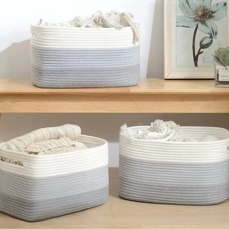 Cotton Rope Woven Storage Basket Solid Color Desktop Cosmetic Organizer Box Toy Laundry Storage Basket Laundry Basket