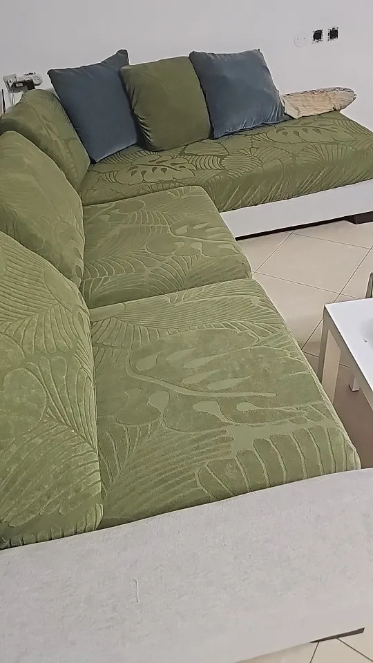 The fabric is pleasant, beautiful, suitable in size except for the corner in Szelong. It seems that where there is an example of a liquid protector but everything between and not 100% and the liquid penets and reaches the sofa