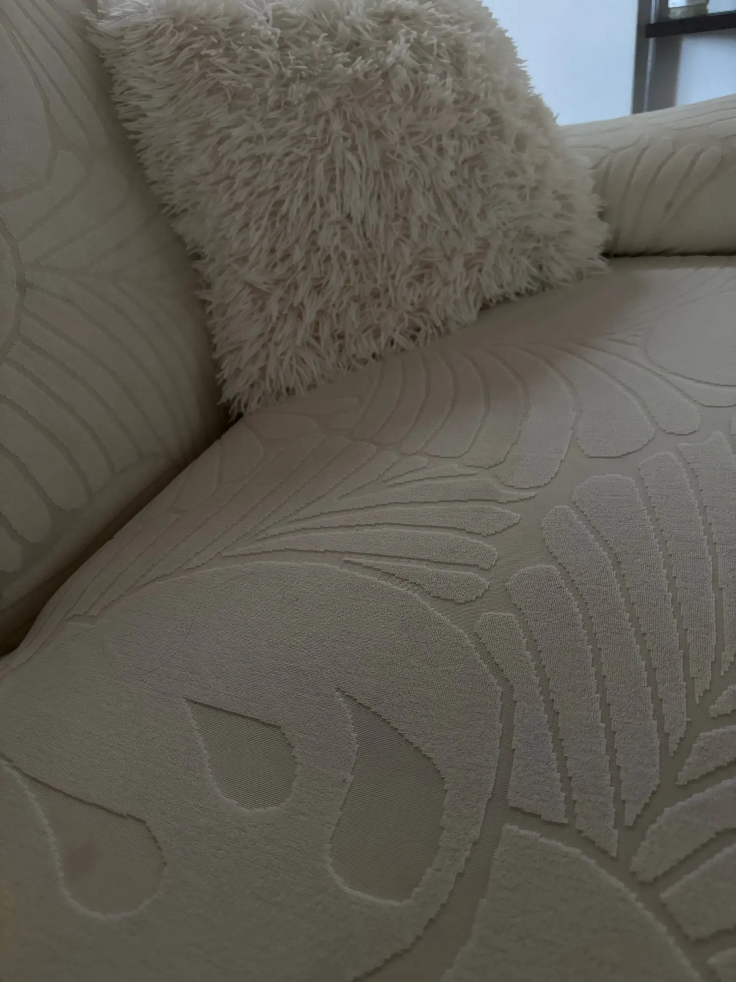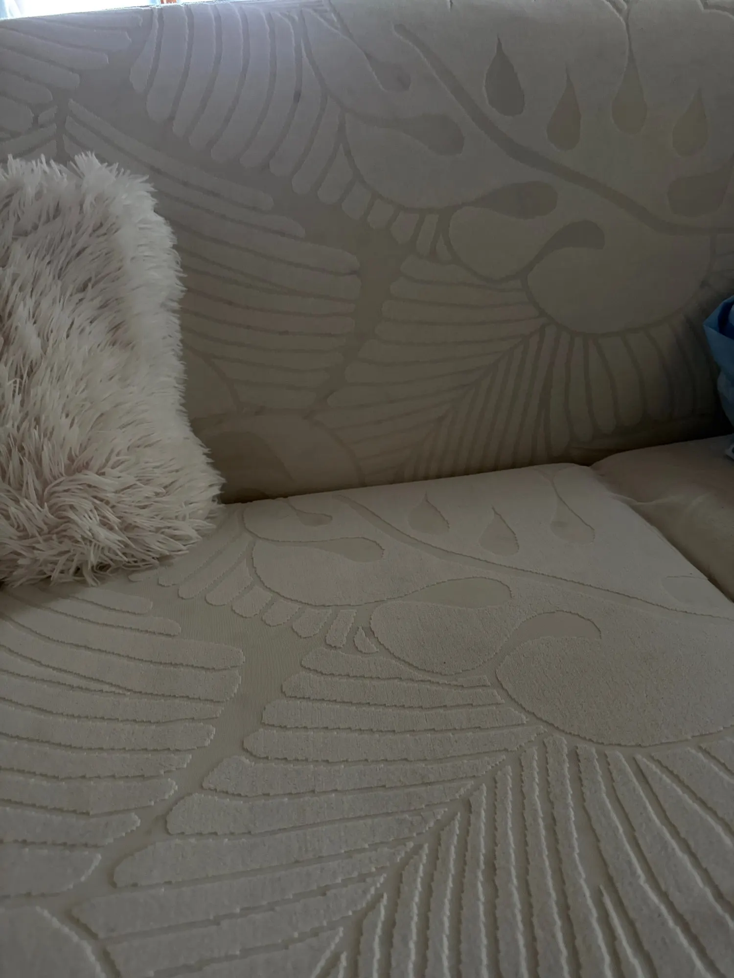 I like the texture and designs on the cover. However i didn't check the nature of it well. Was looking for a full sofa cover. These covers only go for the inner seat. It's a great product though. Feels soft and comfortable