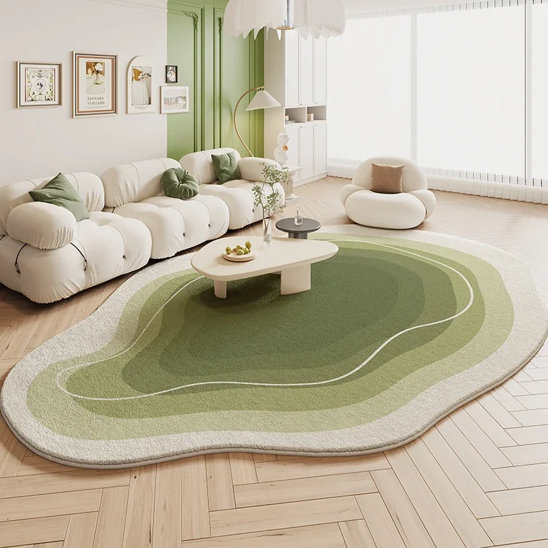 Soft Fluffy Green Area Rugs – Irregular Shape for Cozy Rooms
