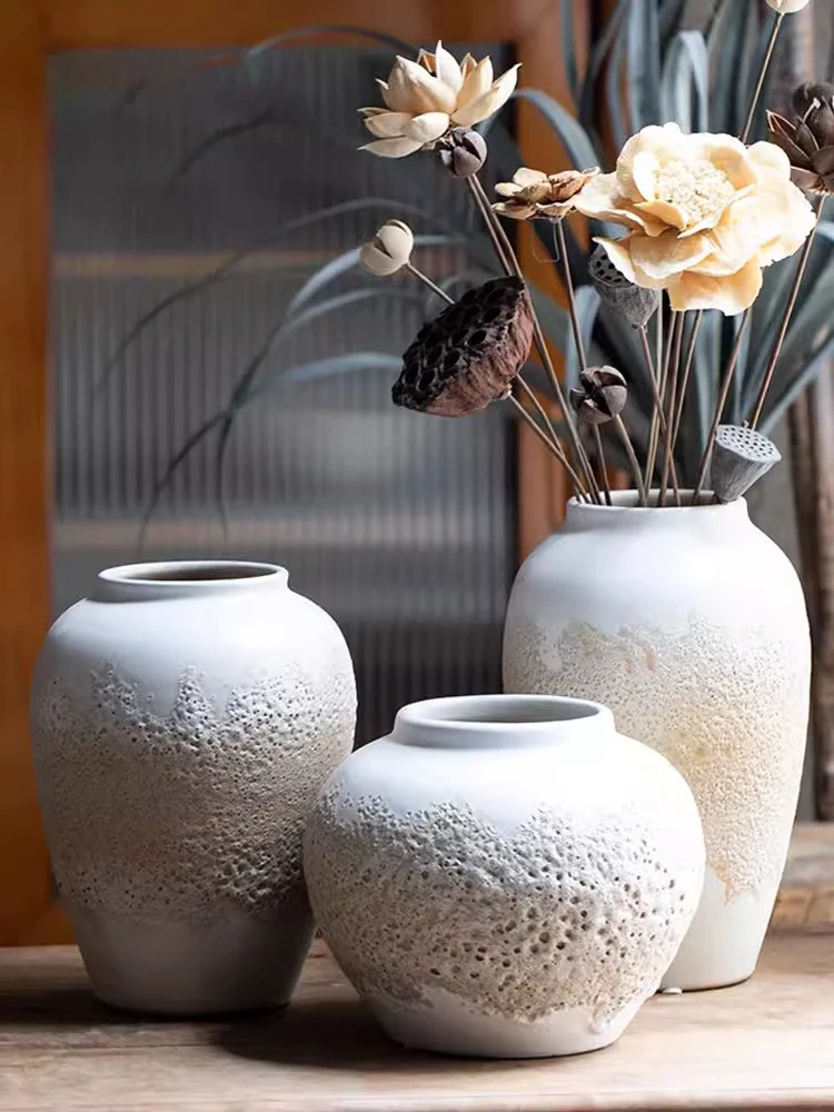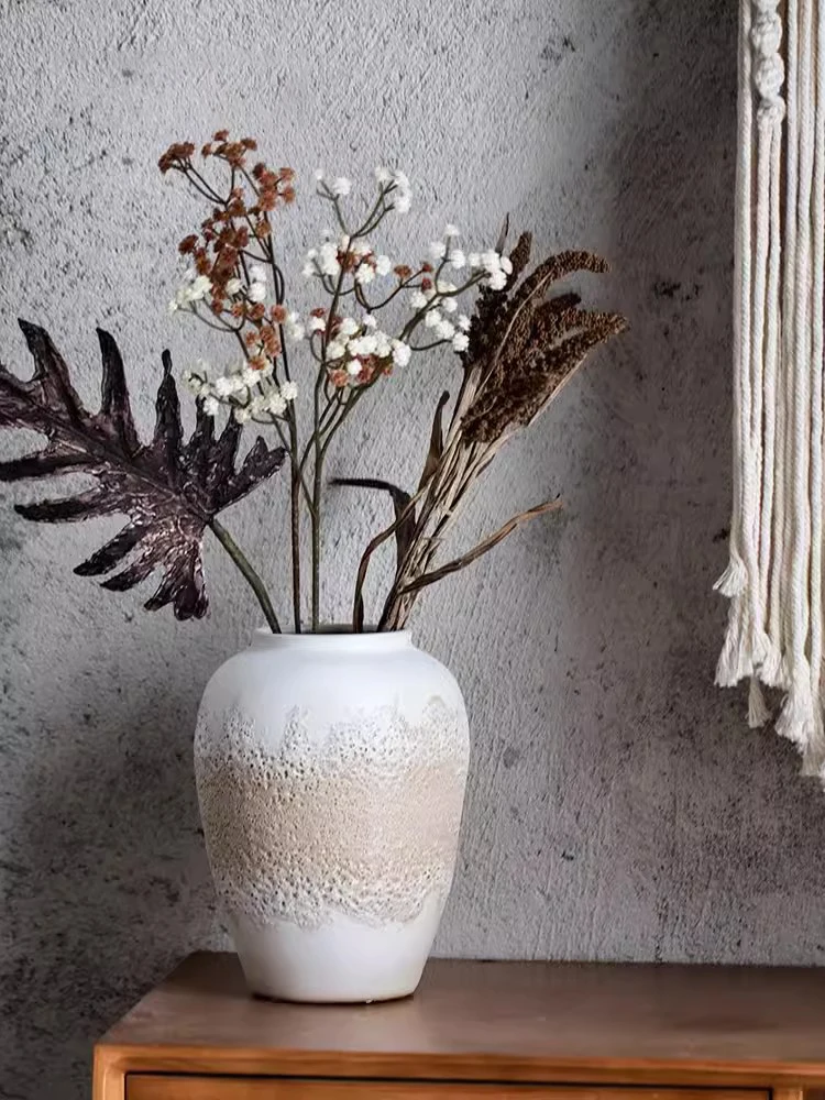 Handmade Rough Pottery Jar Modern Simple Living Room Pottery Dried Flowers Ceramic Flower Arrangement Vase Arrangement