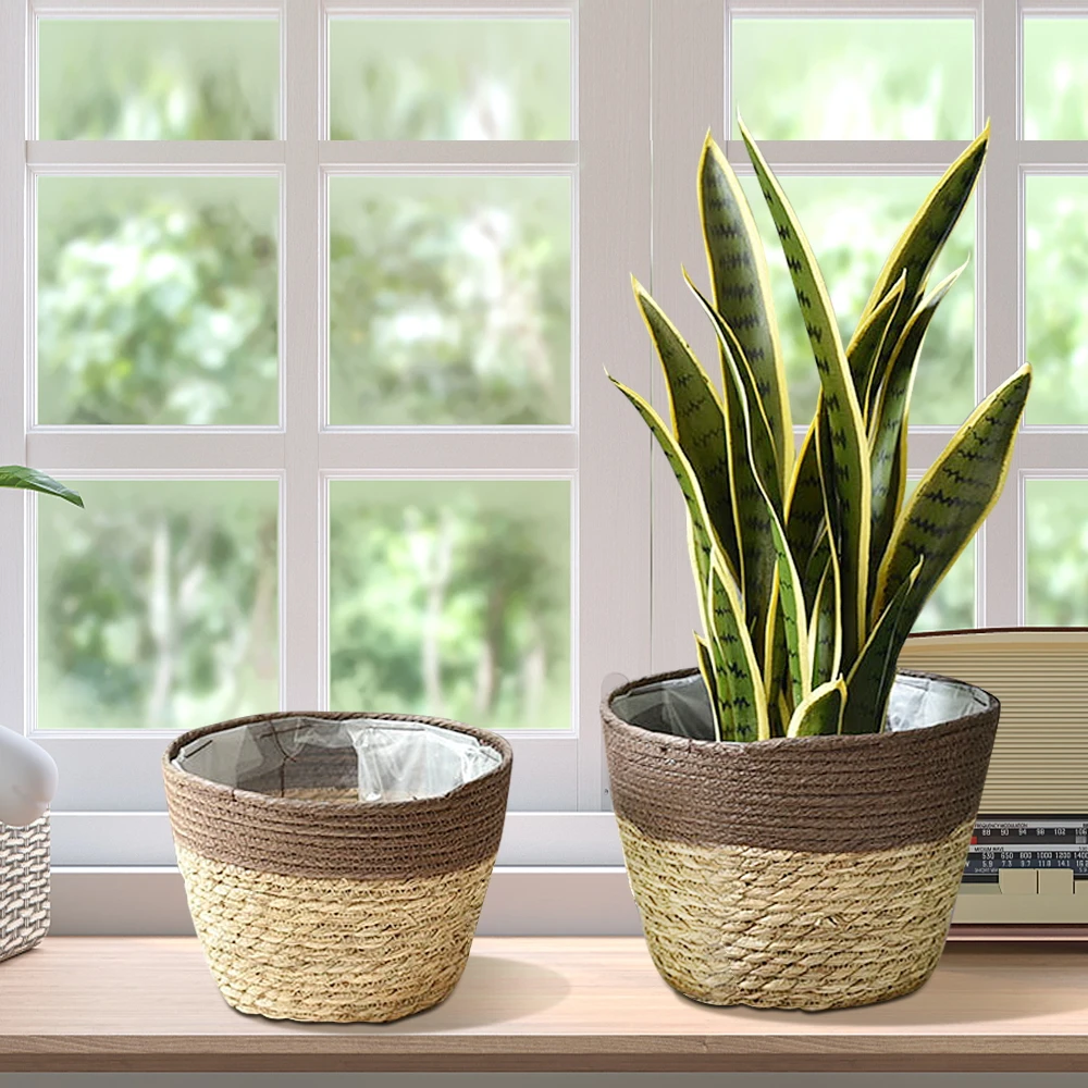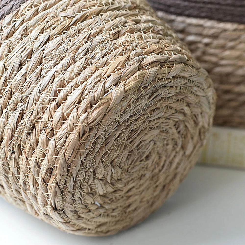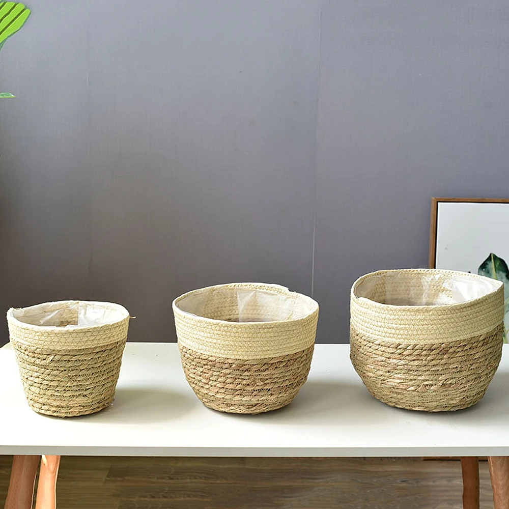 Home Decor Round Handmade Straw Plant Pot Flower Pot Storage Flower Basket