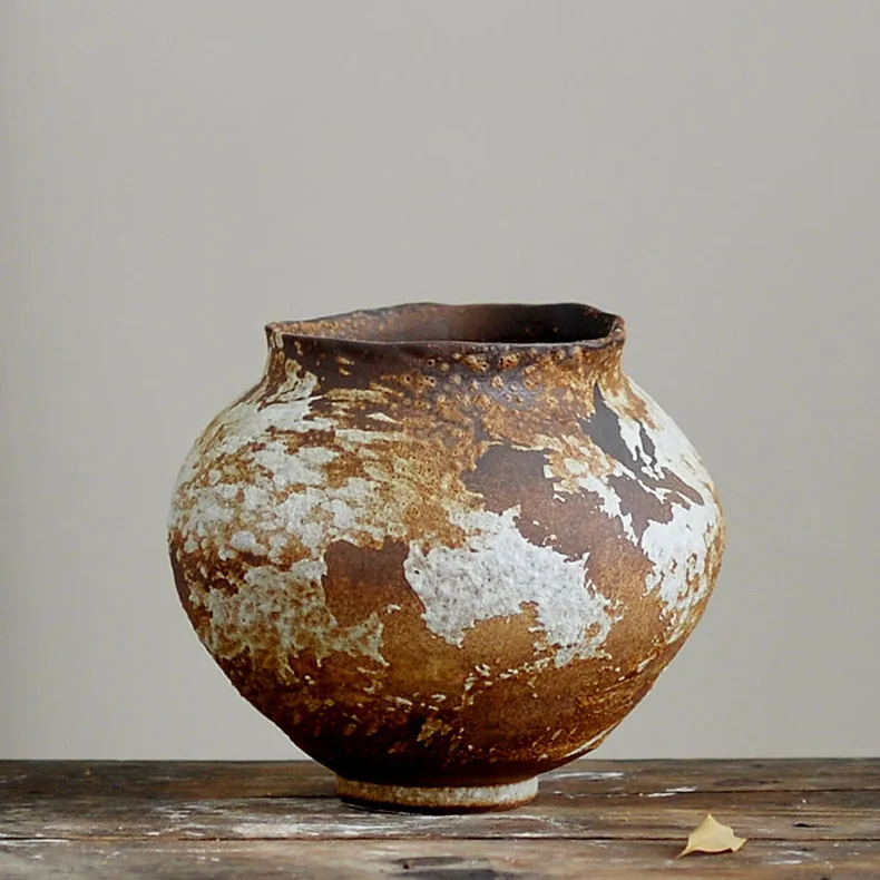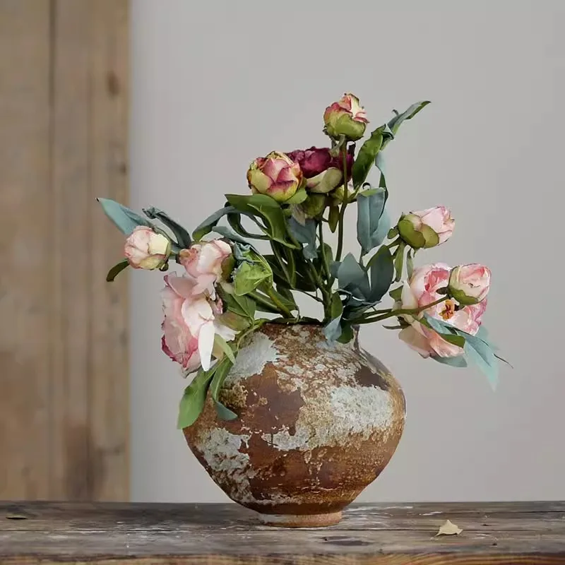 Jingdezhen Retro Wabi-sabi Rough Ceramic Handmade Vase B&B Pottery Jar New Chinese Style Dried Flower Succulent Flower Pot Home