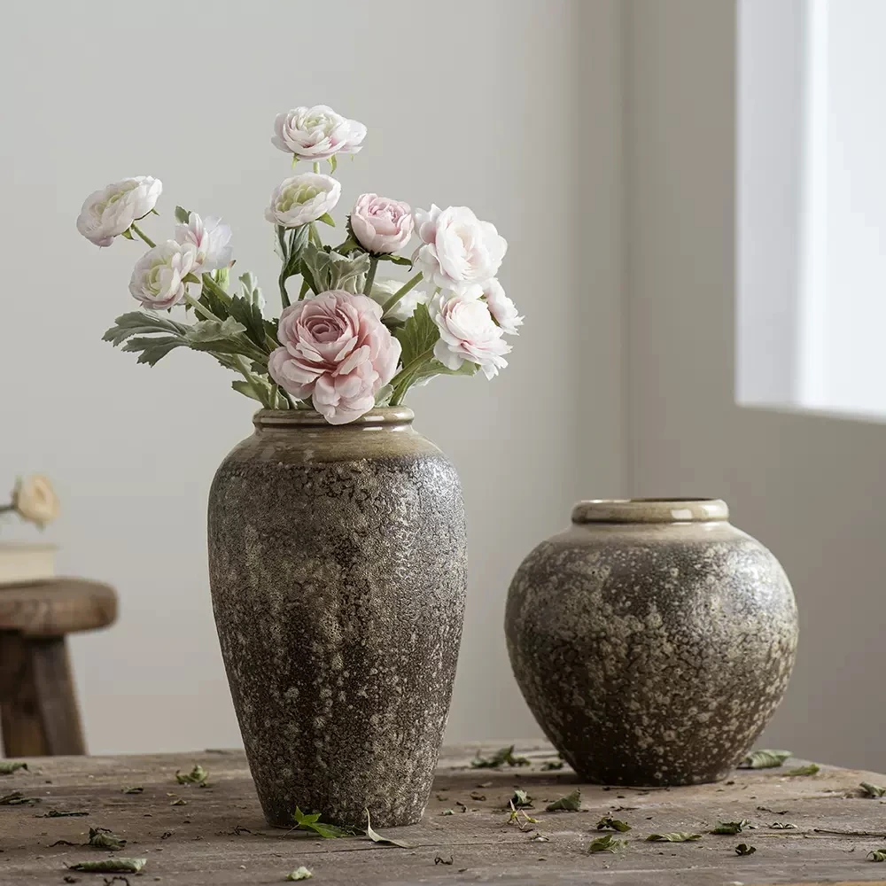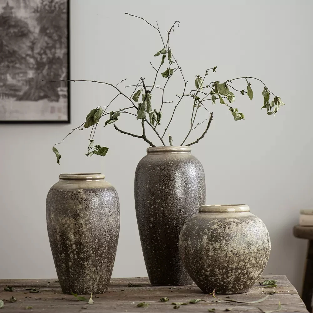 Jingdezhen Zen ornament large rough pottery jar handmade flower arrangement retro nostalgic ceramic vase