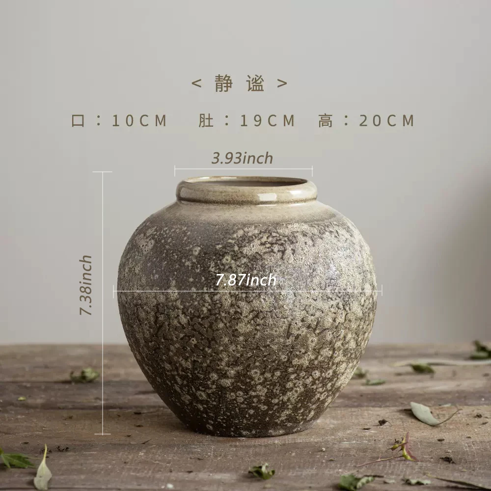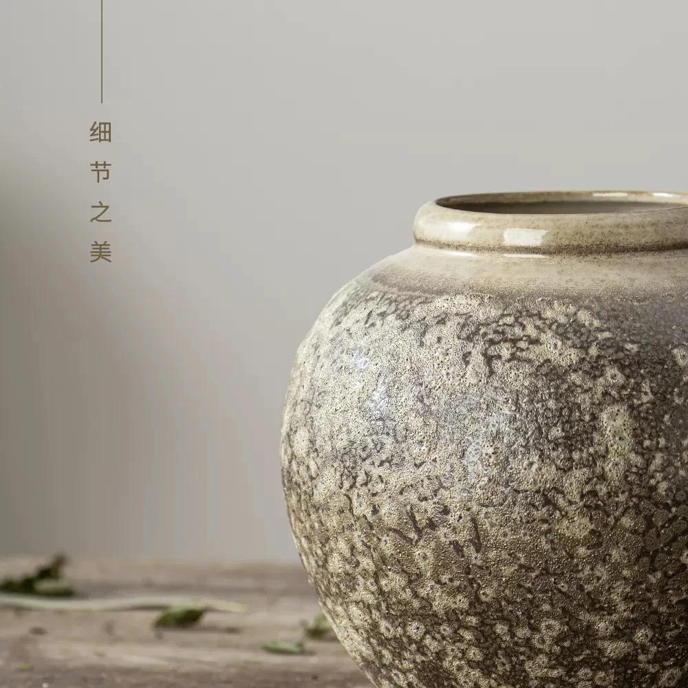 Commodity: Jingdezhen Zen ornament large rough pottery jar handmade flower arrangement retro nostalgic ceramic vase