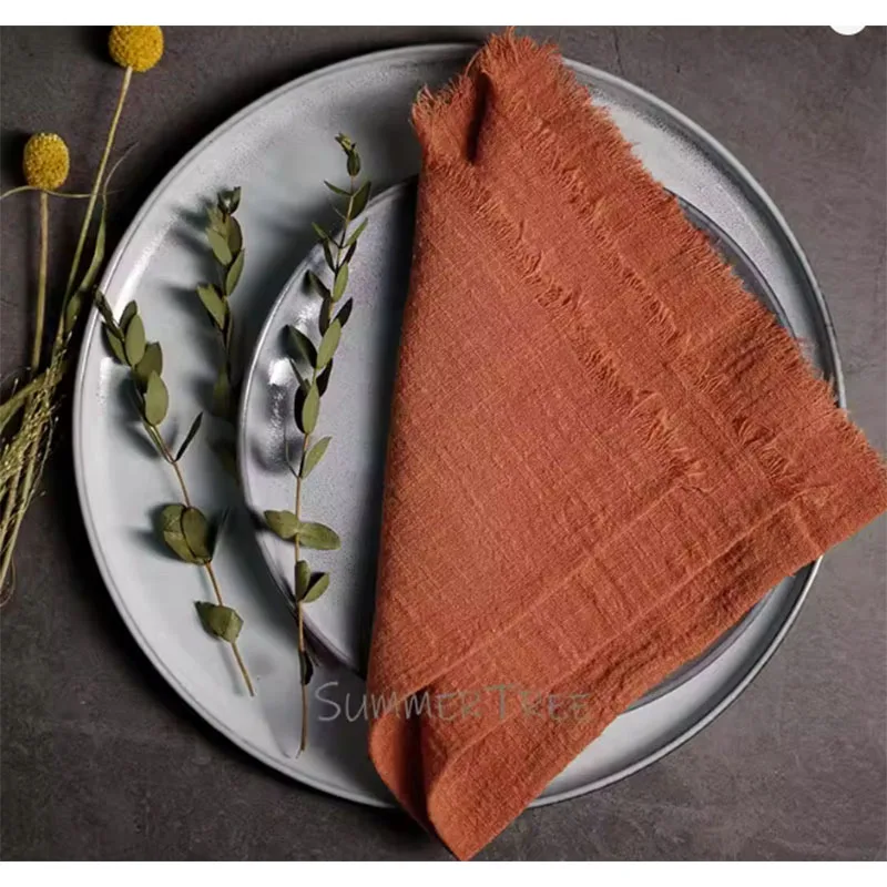 Handmade large cotton gauze napkins in a range of earthy tones add rustic charm to any dining table. Soft, breathable, and customizable, these muslin tea towels make perfect table decorations for weddings or everyday use. Crafted with care for a classic, natural look.