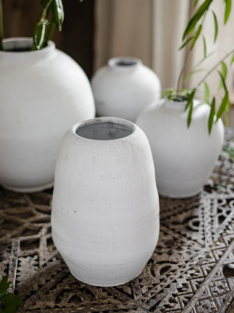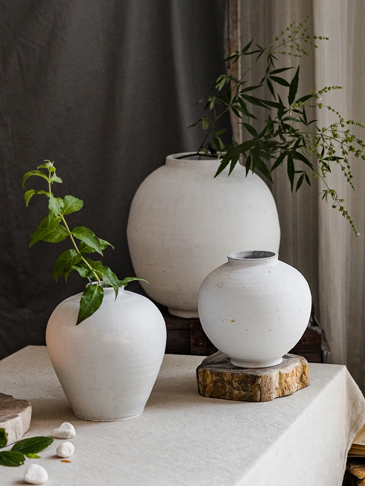 Large Size White Thi Earthenware Flower Vase Cerc Imitation Living Room Floor Standing Moon Clay Pot Vintage Flower Holder