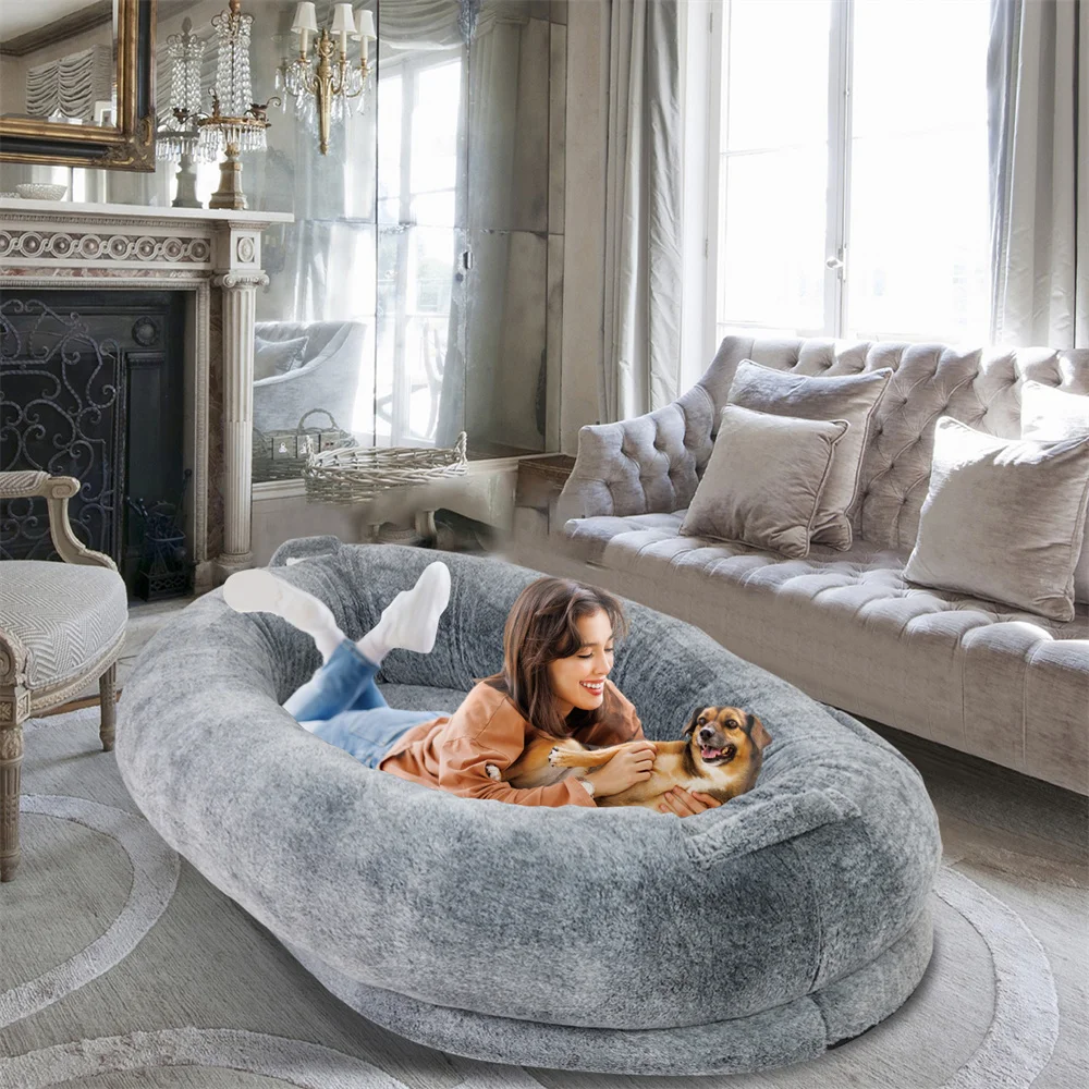 Introducing the Luxury Large Human Sized Dog Bed, designed for pampered pets who deserve the utmost comfort and relaxation. This giant soft fur bean bag is not just a bed; it's a sanctuary for your beloved companion, providing a calming space that promotes peaceful napping and cuddling. Perfect for dogs and adults alike, this bed combines style and functionality, ensuring your furry friend can unwind in luxury.