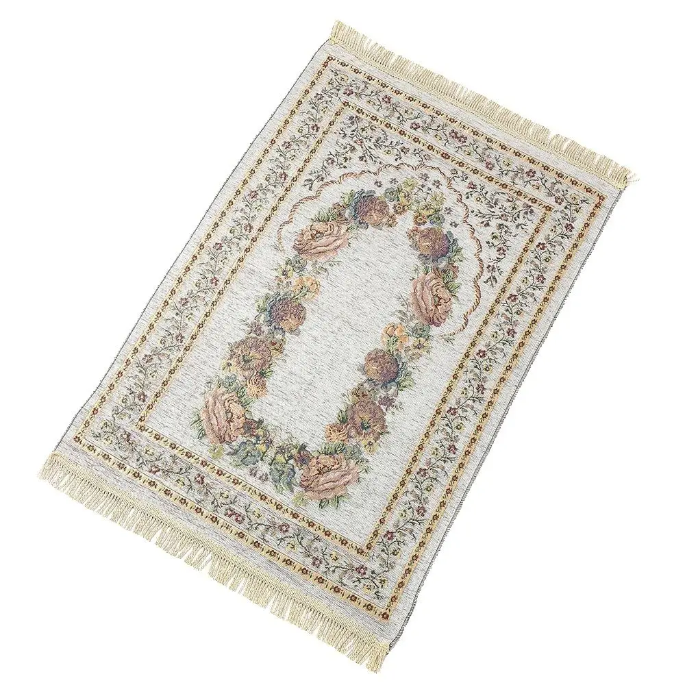 Muslim Prayer Rug Floral Muslim Prayer Mat Portable Prayer Blanket Tassels Cotton Chenille Praying Rug Ramadan Gift for Men Wome