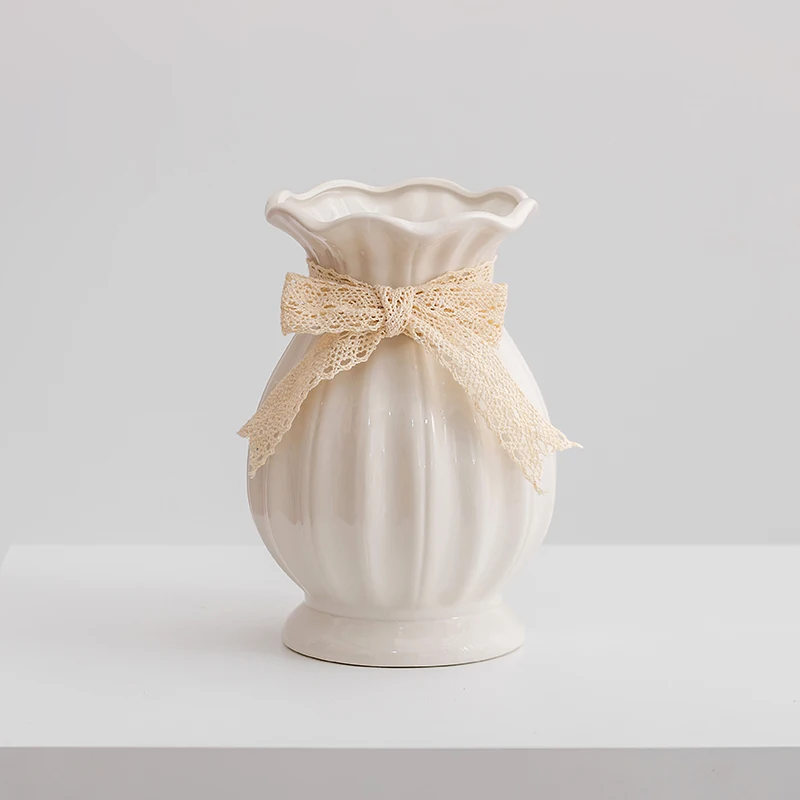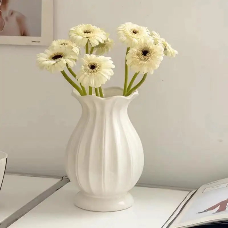 The Nordic large white ceramic vase features a sleek modern design, perfect for adding a touch of sophistication to any room.