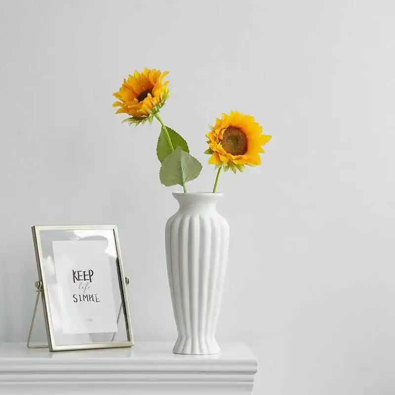 The white ceramic vase exudes a minimalist Nordic charm, perfect for modern home decor.