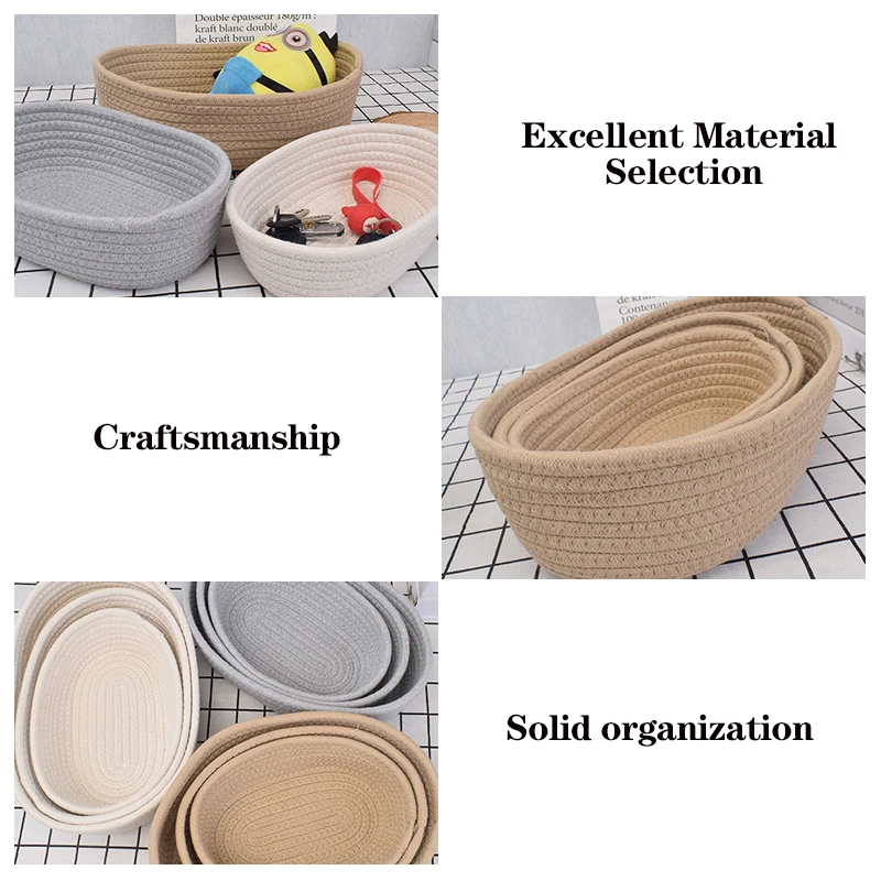 1. The storage basket is made of cotton thread, which is more upright and wrinkleless, simple and delicate, strong and durable, and can be used repeatedly.