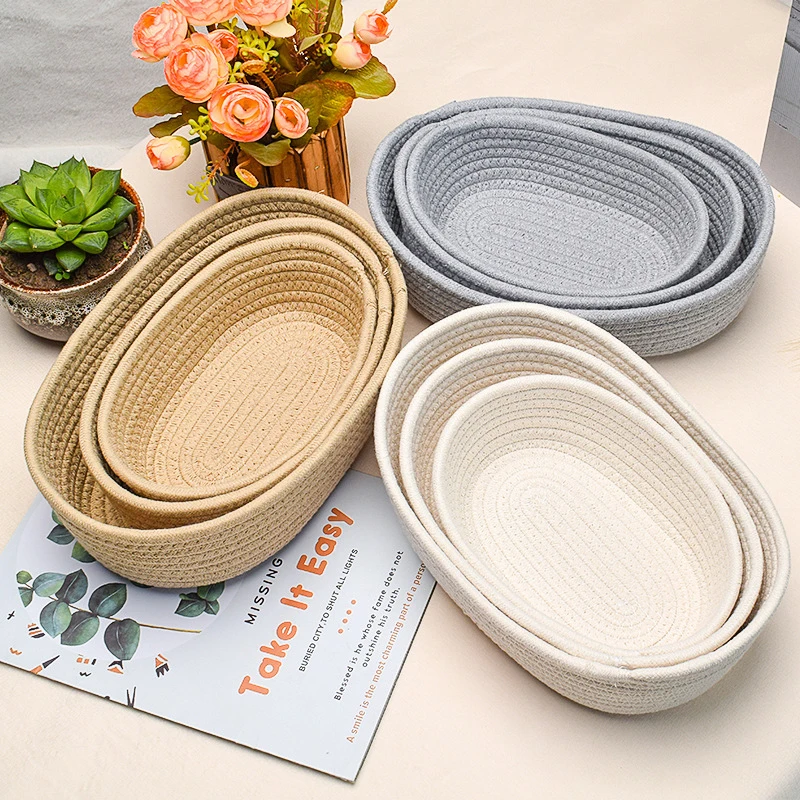 Nordic Woven Cotton Rope Storage Baskets Organize Boxs Sundries Key Cosmetics Storage Baskets Desktop Sundries Organize Basket