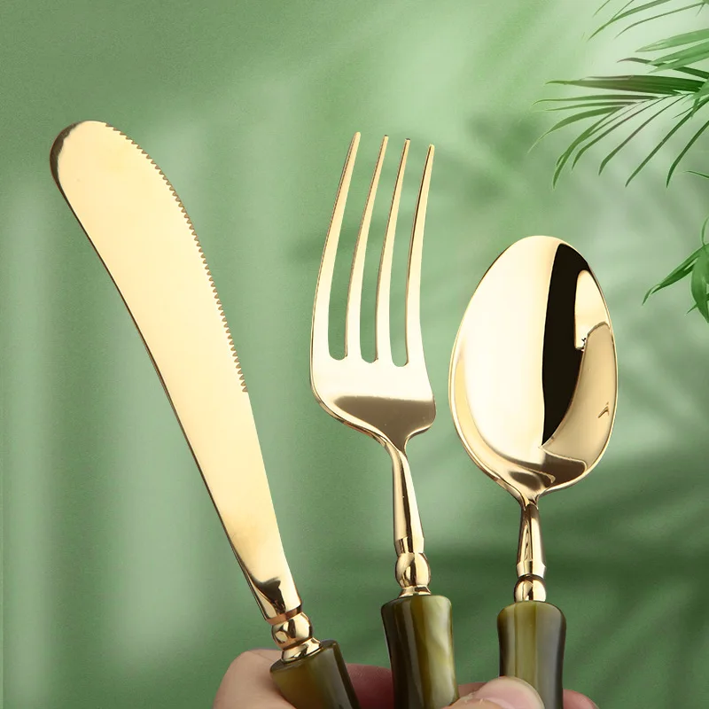 This cutlery set enhances your dining experience by combining comfort and style. The ergonomic acrylic handles provide a comfortable grip, while the gold plating offers a refined aesthetic that complements any table setting. Whether hosting a holiday meal, serving guests at a restaurant, or enjoying a quiet dinner at home, this set adds a touch of luxury without overwhelming simplicity. It also makes a meaningful gift for weddings or special occasions, appreciated for both its beauty and utility.