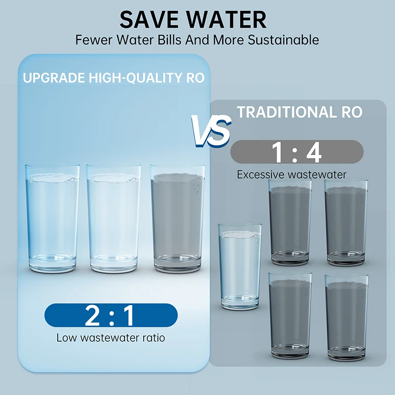 Save 50% water compared to standard RO systems! CE/ROHS/NSF certified, safe, environmentally friendly, and sustainable.