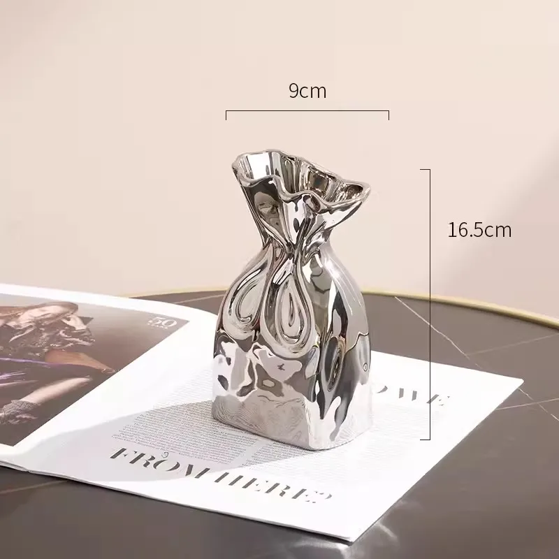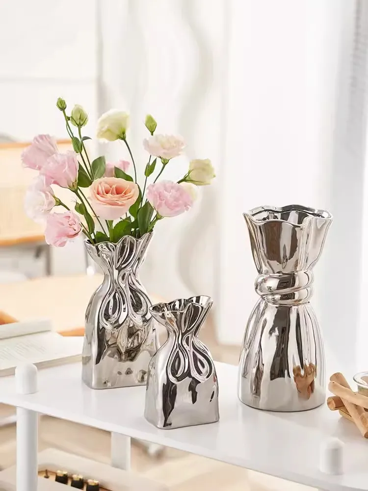 Premium Feeling Simple Silver Plated Ceramic Vase Living Room Table Creative Flower Arrangement Flower Holder