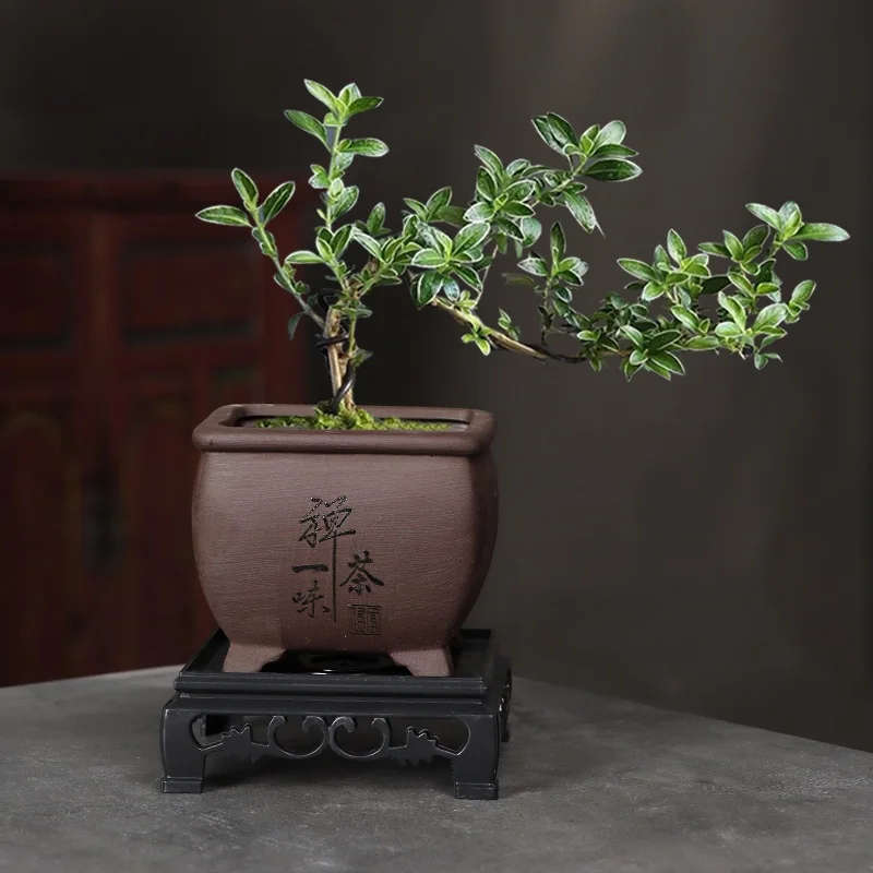 Purple Clay Flower Pot Small Tree Old Pile Breathable Lacape Pot Living Room Orchid Flowering Plant Succulent Tray Included