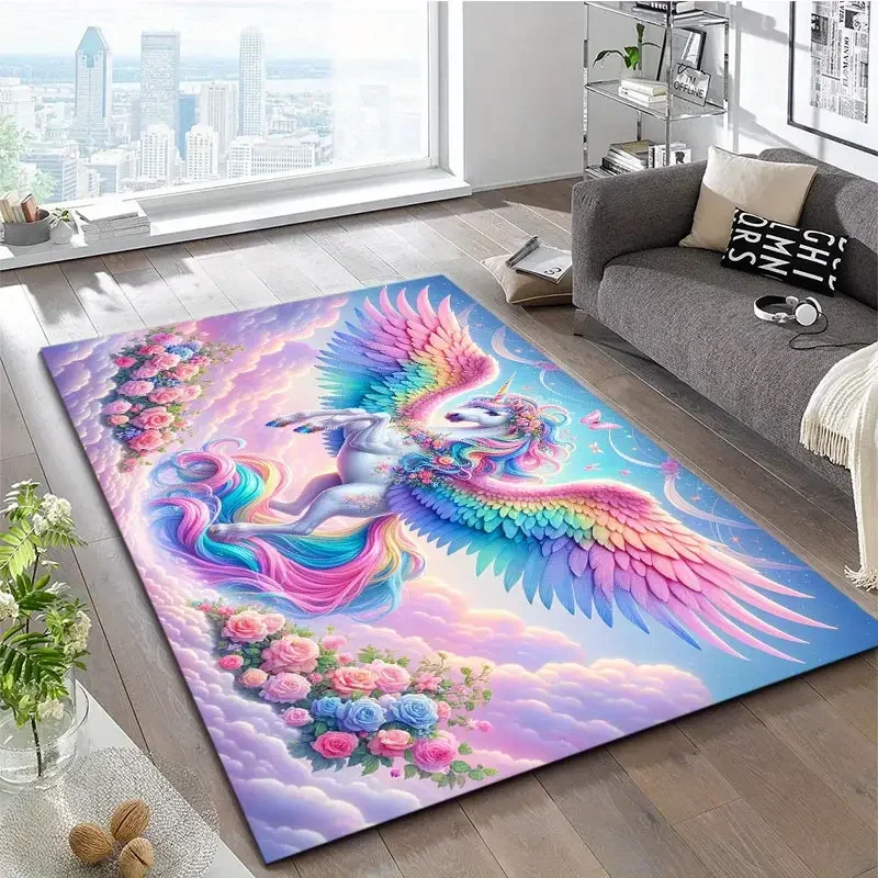 Rainbow Unicorn Carpet for Girls Bedroom Living Room Decor Sofa Rug Children’s Playroom Play Mat Gifts for Girls Christmas Gift