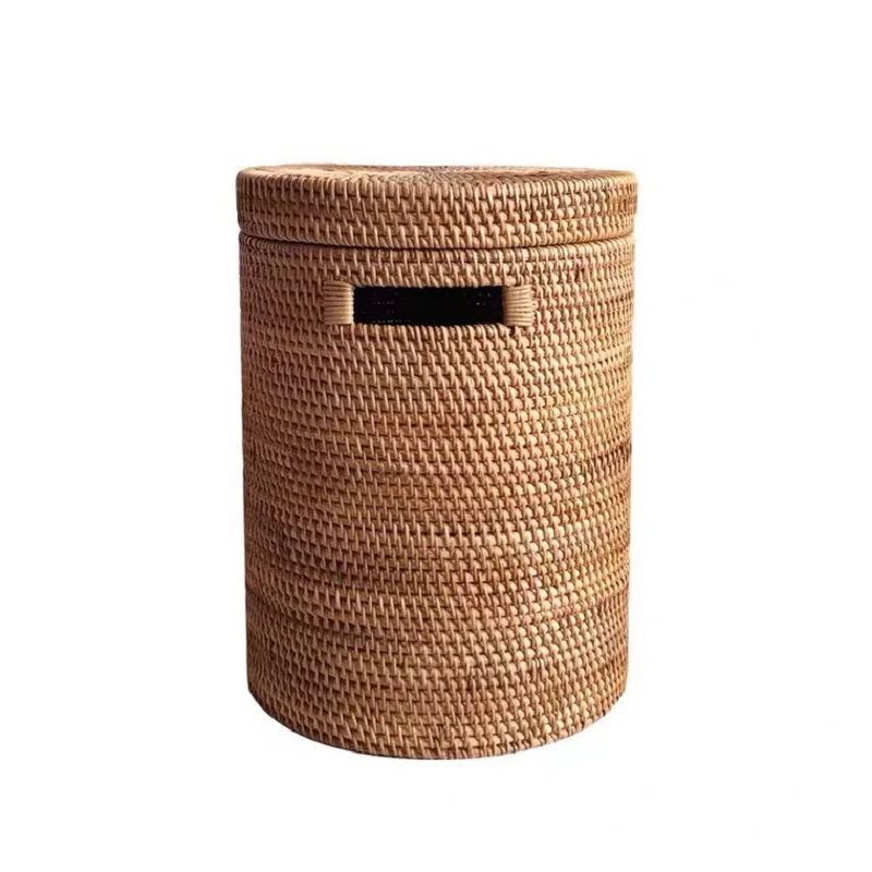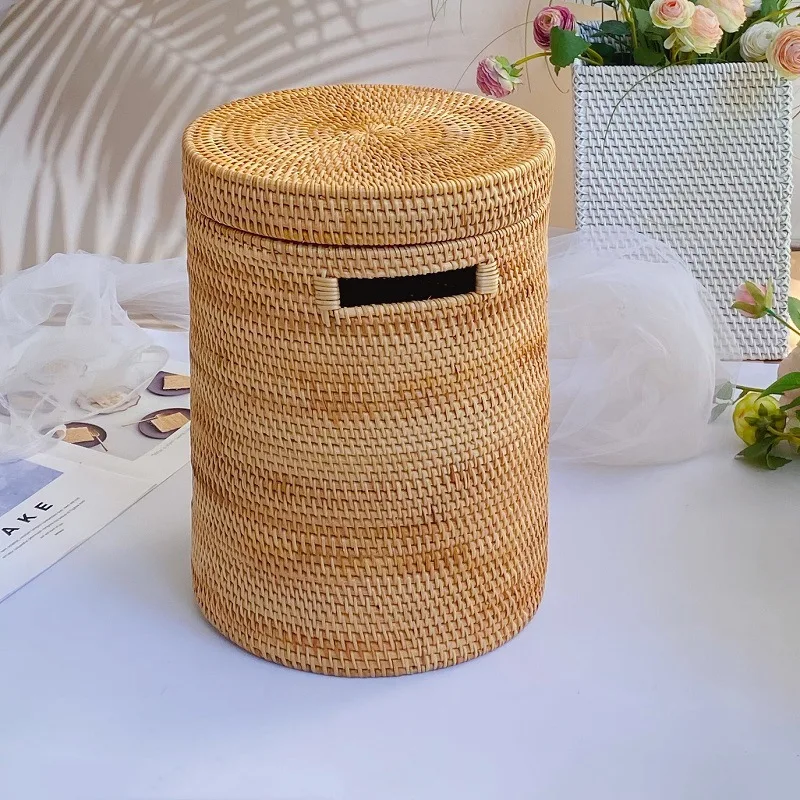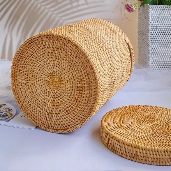 Natural Rattan Weaving Laundry Basket - Household Organizer for Toys and Dirty Clothes with Lid Simple and Aesthetic Hot Sale