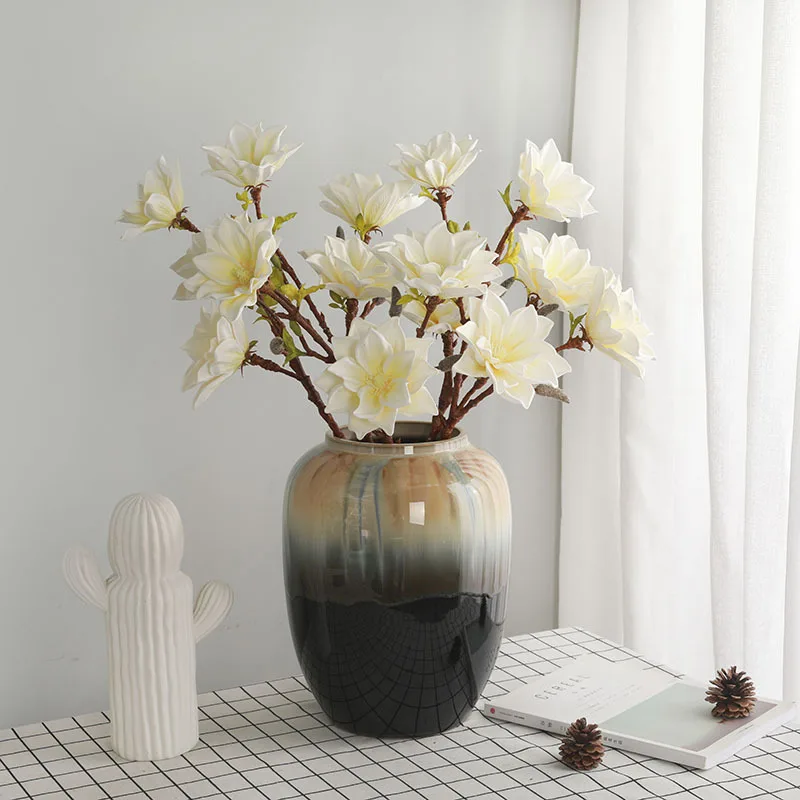 Introducing our Real Touch Magnolia Artificial Flowers, the perfect addition to elevate your home decor or special occasion. Designed with meticulous attention to detail, these stunning faux magnolia branches bring a touch of elegance and charm to any space, making them an ideal choice for weddings, anniversaries, or simply beautifying your home.