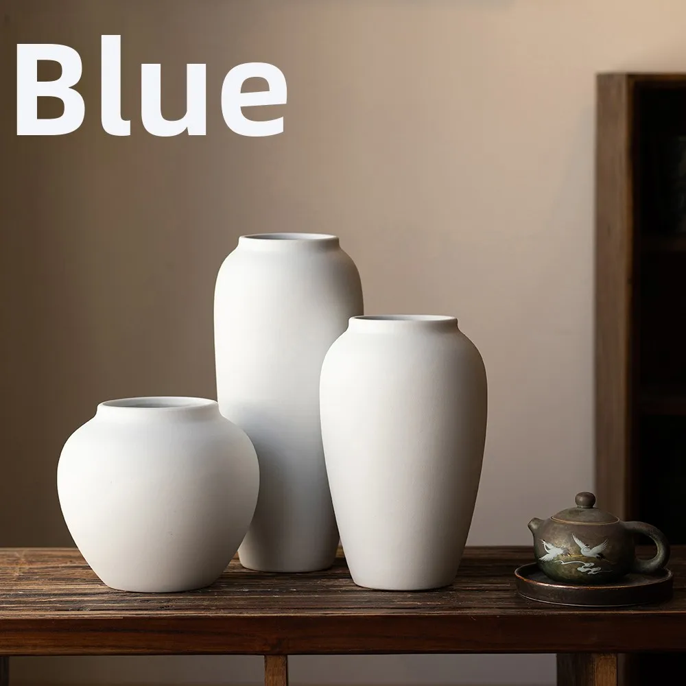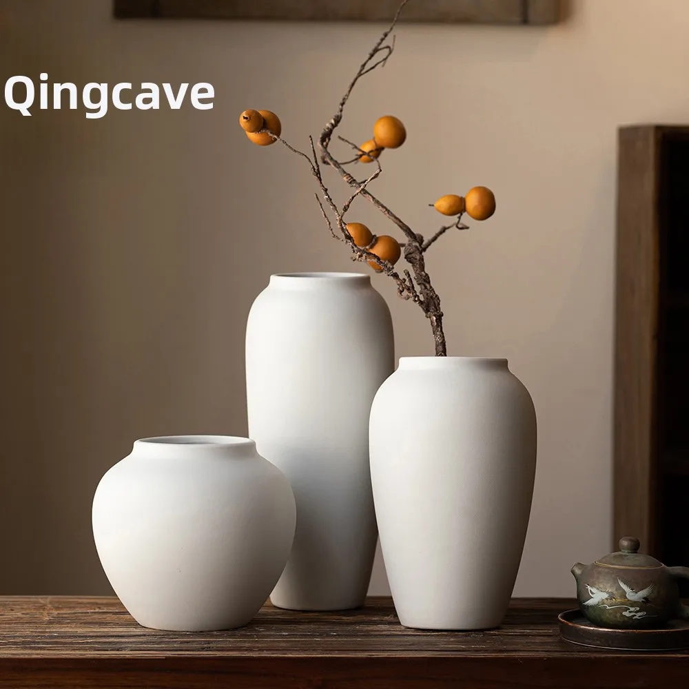 Retro Chinese Cerc Flower Vase Simple White Decorative Dry Flower Insertion No Tead Coarse Pot for Living Room