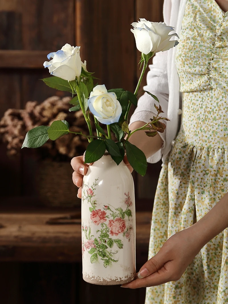 Retro Garden Pink Flower Cerc Small Diameter Vase Decorative Item Office Desktop Dining Table Creative Vintage Countryside…